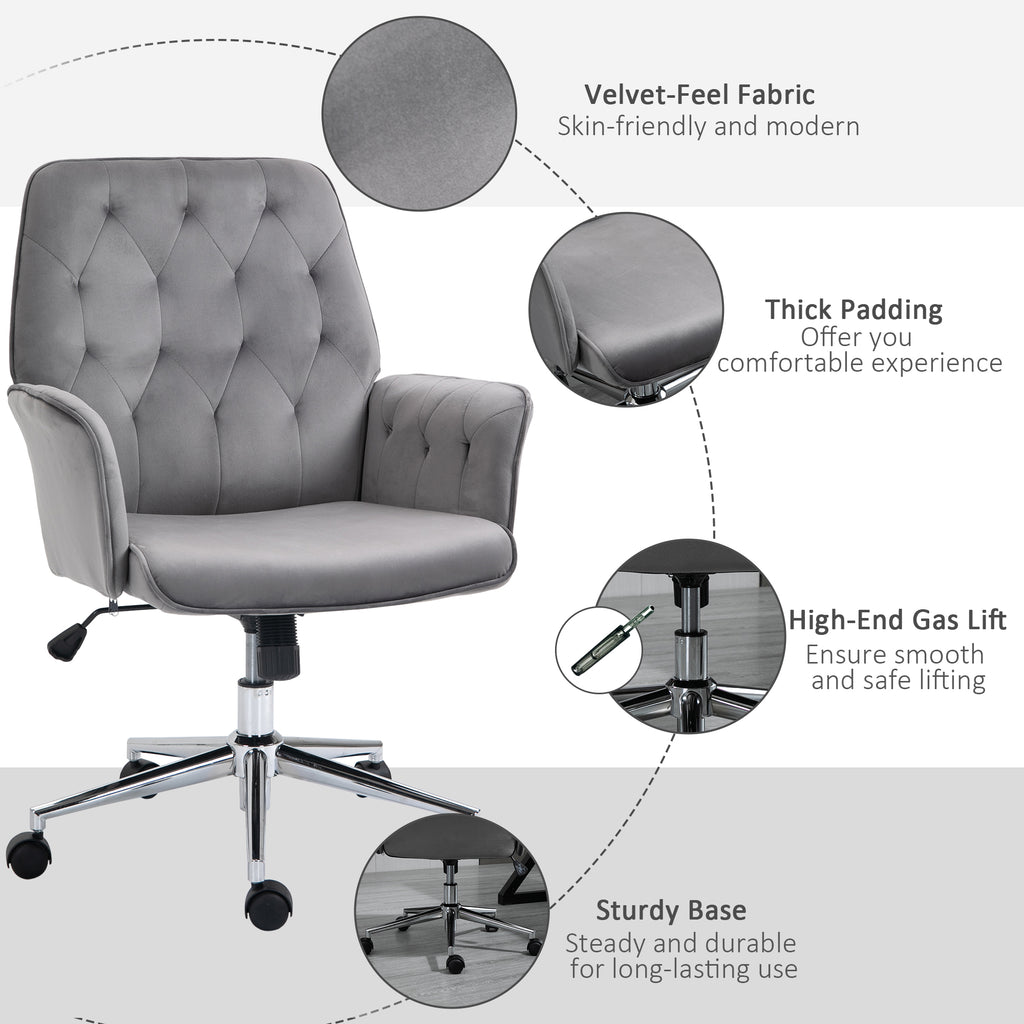 Vinsetto Swivel Computer Chair w/ Arm Modern Style Tufted Home Office Deep Grey