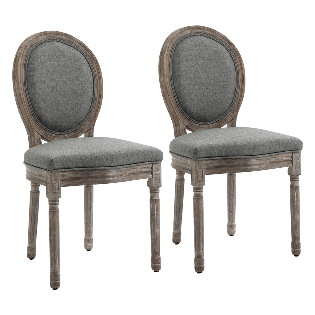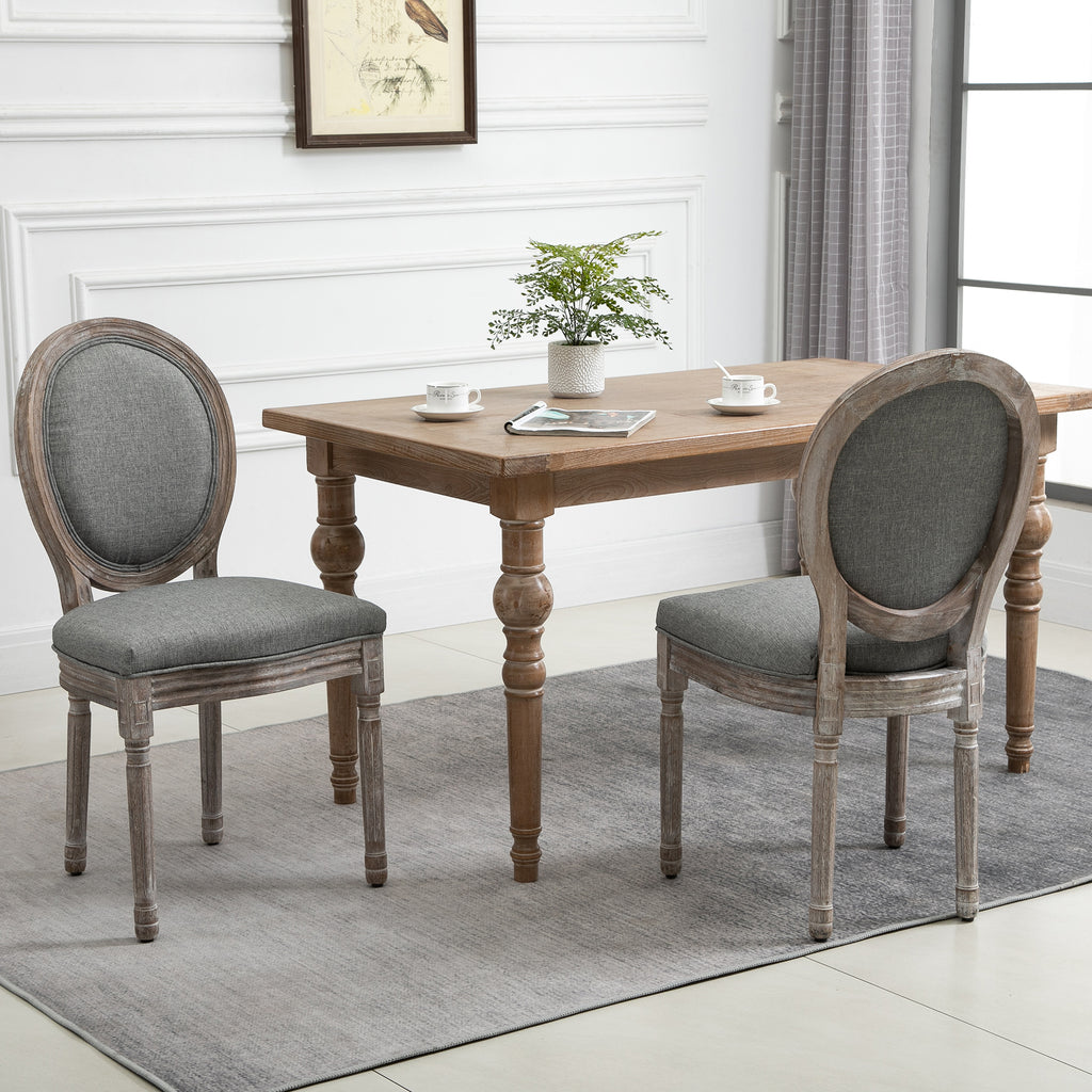 Fort the perfect set of chairs to infuse elegance into your home and beyond, look to this pair from HOMCOM. Using solid wood for the frame and legs to ensure everyday durability, each chair is crafted into a traditional French style which will never go out of style. The curved back provides support when you lean back, and both the seat and back feature a foam filled pad so you can sit comfortably. Each chair is finished with foot pads to provide extra balance, whilst protecting your floor. An effortless blend of beauty and comfort to love for years to come.