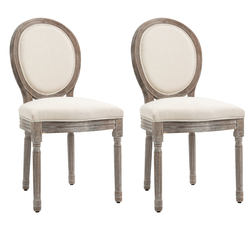 Fort the perfect set of chairs to infuse elegance into your home and beyond, look to this pair from HOMCOM. Using solid wood for the frame and legs to ensure everyday durability, each chair is crafted into a traditional French style which will never go out of style. The curved back provides support when you lean back, and both the seat and back feature a foam filled pad so you can sit comfortably. Each chair is finished with foot pads to provide extra balance, whilst protecting your floor. An effortless blend of beauty and comfort to love for years to come.