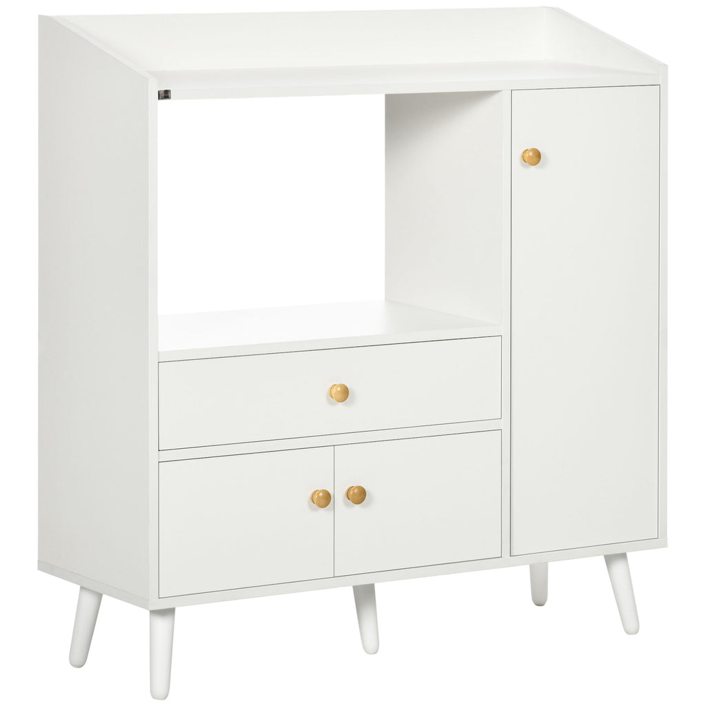 This HOMCOM kitchen cabinet gives you loads of space, meaning a tidy, organised space - no matter what. It comes with a spacious open section (ideal for small appliances), a drawer, a small cupboard and a tall side cupboard. The two shelves inside the said cupboard are adjustable to three different levels: set storage to a size you require. Complete with wooden legs which give plenty of support.
