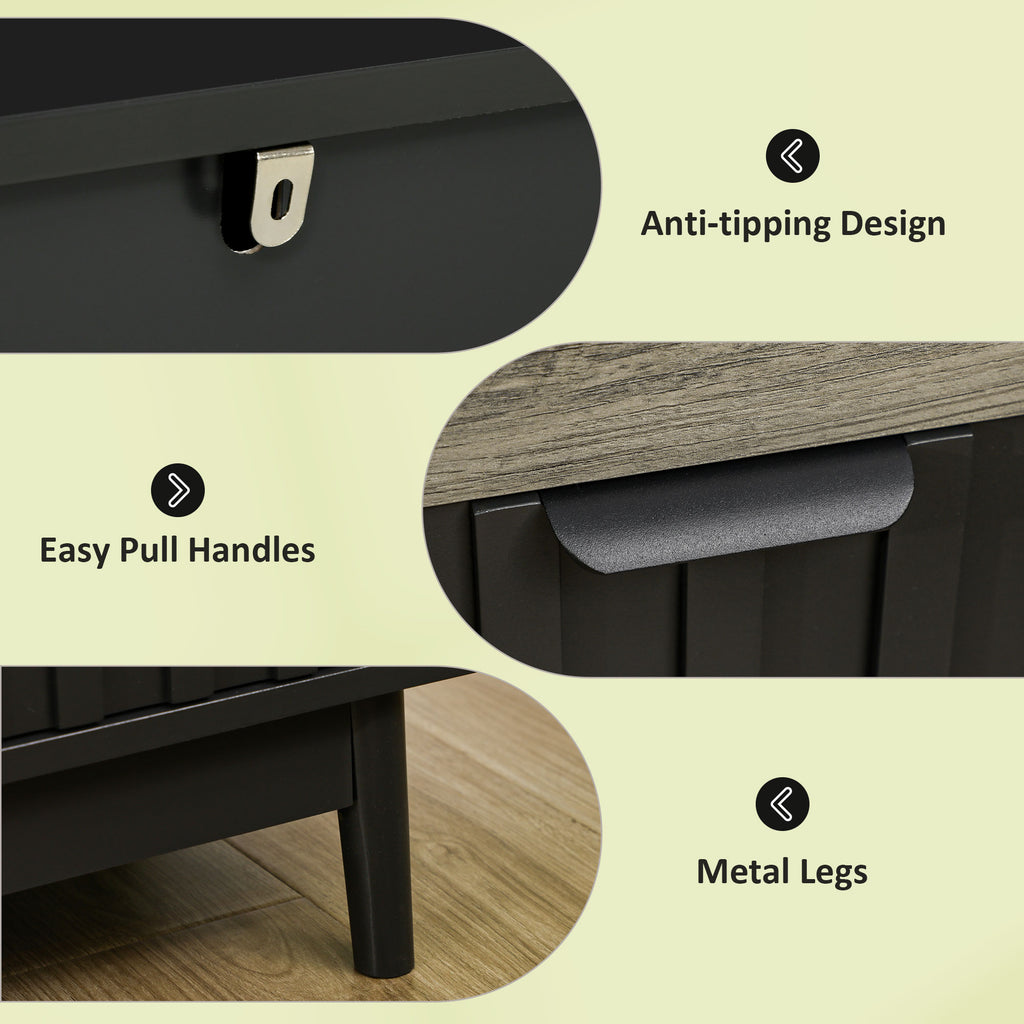 Mixing the classic with the modern, this bold drawer chest, from HOMCOM, is here to make an impression in your home. It comes with a dark grey structure, fitted with two indented drawer doors and two wood-effect drawer doors: this is a contrasting look which oozes plenty of industrial sophistication. It features four drawers: room for keeping clothing and other pieces stored and organised. Drawer chest package comes with anti-tipping straps to attach unit to the wall safely.