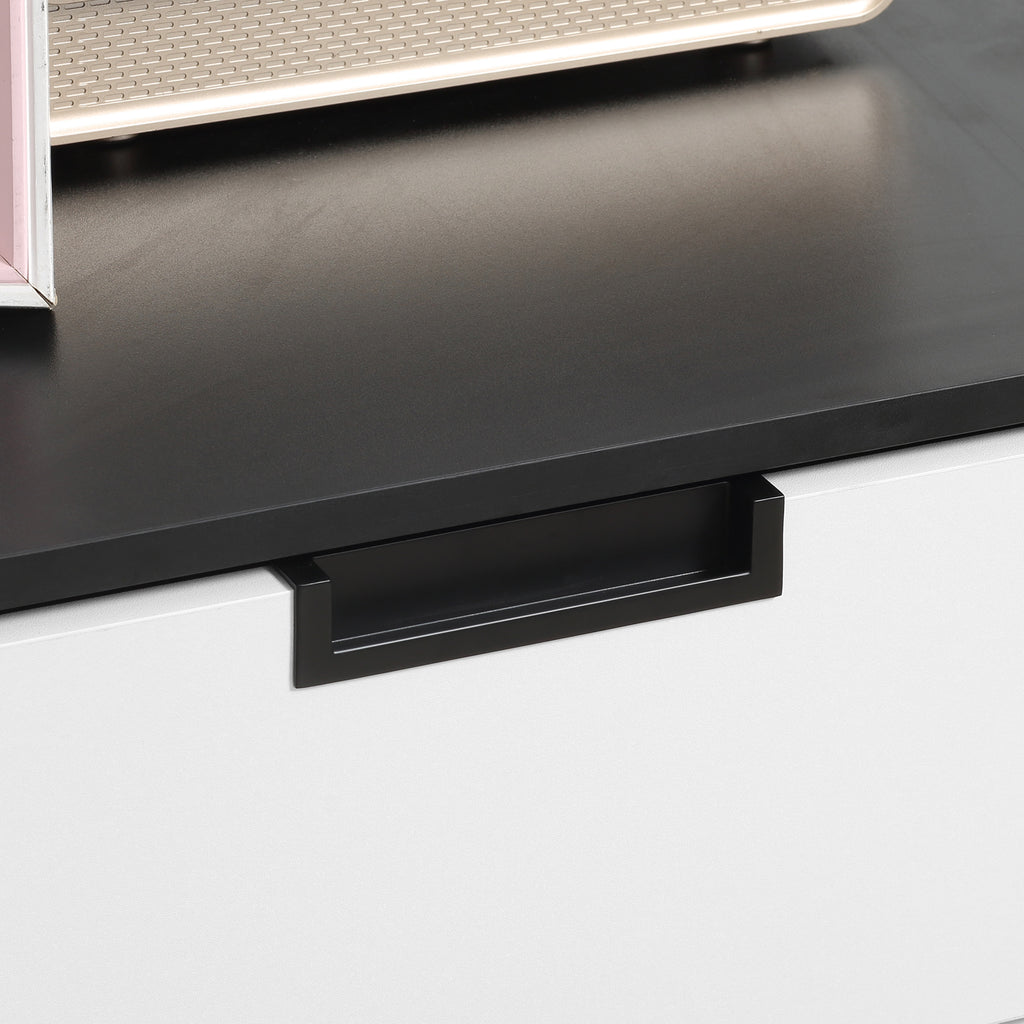A decorative update to your bedroom, which brings in handy storage - this HOMCOM chest of drawers. Four storage drawers means plenty of storage room for clothing and more. Black handles to open and close easily. Made from particle board, they're durable and sturdy. Complete with anti-tipping straps for safety.