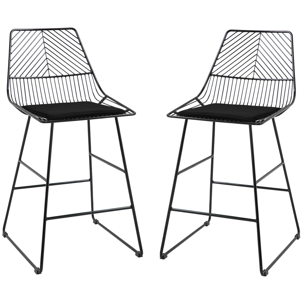 HOMCOM Modern Counter Height Bar Stools Set of 2 pcs Wire Metal Barstools