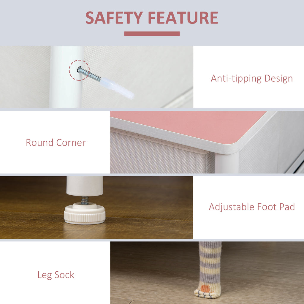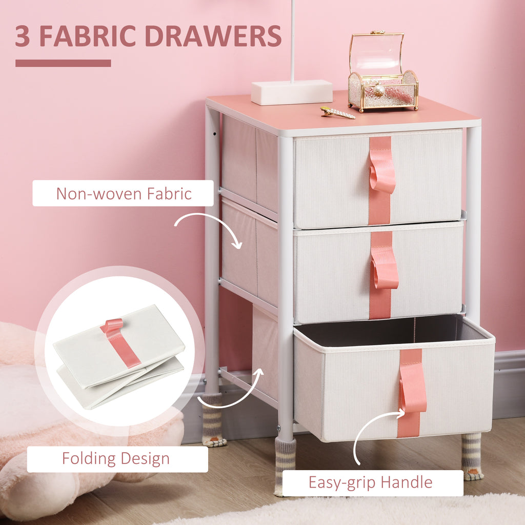 Bring easy and effortless storage into the home and beyond with this fabric drawer chest from HOMCOM. 3 large fabric drawers gives you lots of room, with the flat top to provide additional space. Made from non-woven fabrics, the storage drawers give a softened look and with fabric handles to pull out easily. Anti-tipping design to keep it balanced on uneven floor and 4 leg socks adds visual interest and well protects the floor. A great addition in kid's room, bedroom and hallway.