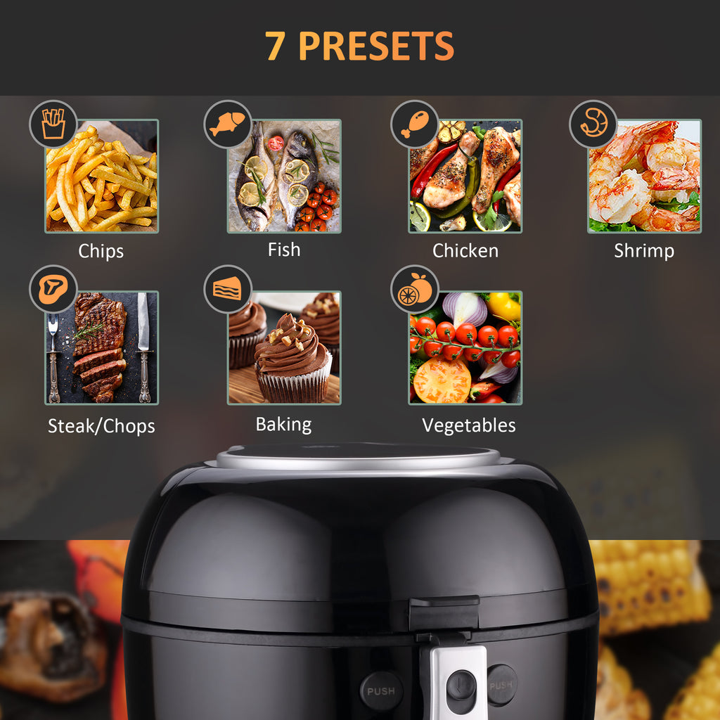 Do you like fried foods, but want a healthier lifestyle? HOMCOM has a multifunctional small air fryer made just for you. Enjoy foods for breakfast, lunch, and dinner with bake, broil, roast, and dehydrator function. Use the top LED display with 7 programmable menus, so if you're not sure on cook temperature and time, this compact air fryer can do the work for you. In autonomous mode, you can make your food will be made at its best. Don't give up your favourite foods with this HOMCOM air fryer