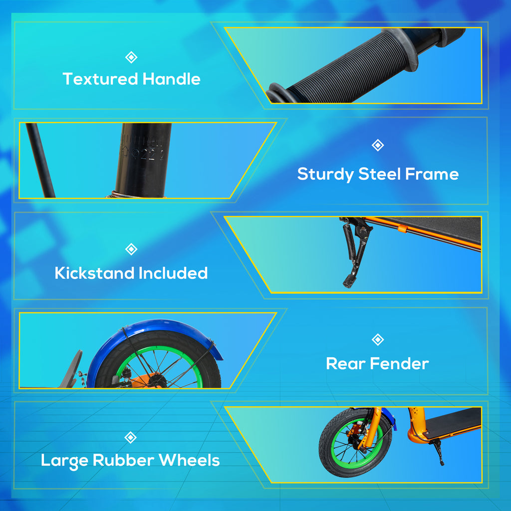 Make outdoors extra fun with this kids HOMCOM scooter. It has adjustable handlebars that can grow with your child – they come wrapped for an easier grip. A wide foot deck keeps them balanced, so they'll be confident when scootering and they can stop at any time, thanks to the front and rear brakes. Whether it's the school run, around the park or up and down they street, the inflatable wheels ensure their ride is always safe and smooth.