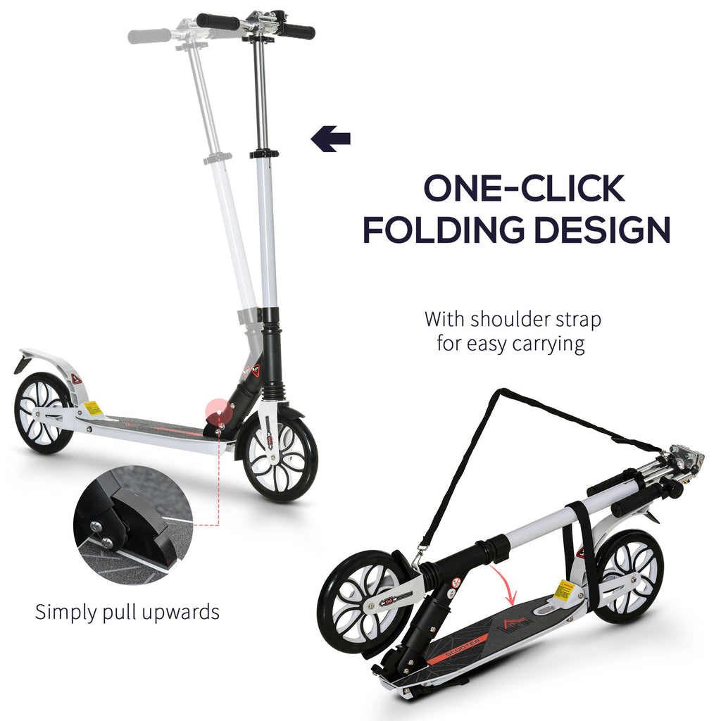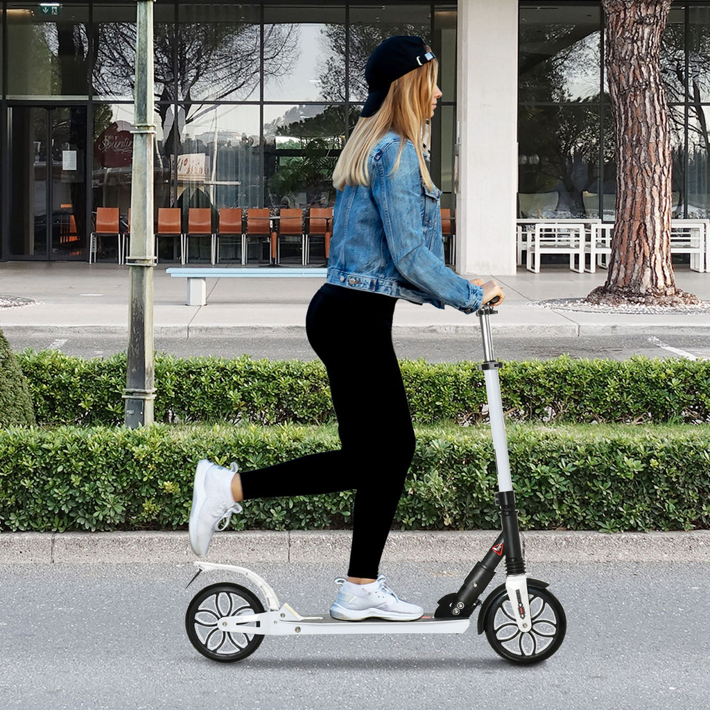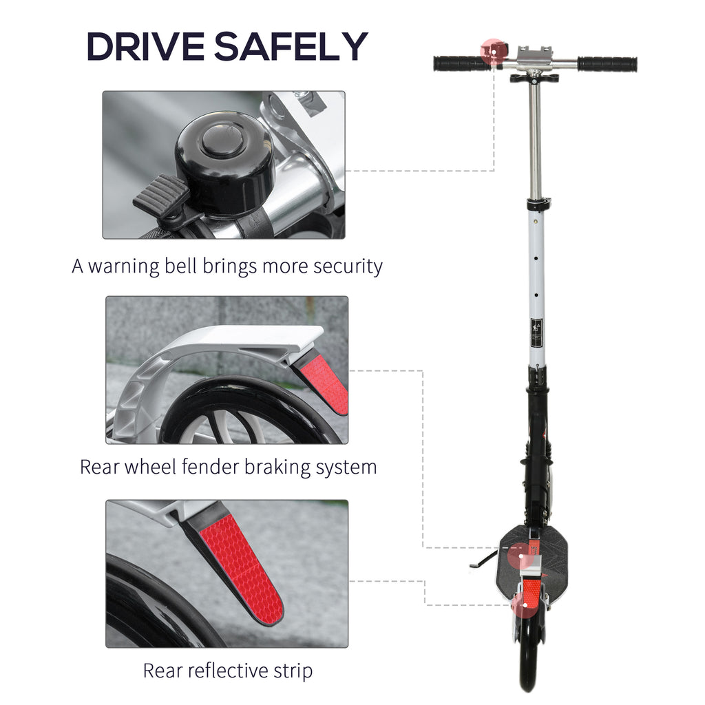 Cut your downtime spent getting around town with this kick scooter from HOMCOM. The aluminum build ensures a frame that is just as durable and reliable as it is lightweight. You'll find that this commuter scooter has impressive features, there is a height-adjustable handlebar, non-slip footboard, and comfortable grip handles. Safe as it is fun, two 20cm PU tires pair with the shock mitigation system for a smooth and comfortable journey every time.