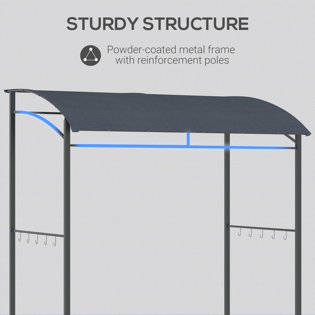 Protective BBQ grilling all summer long with this Outsunny smoking shelter. Formed of a metal frame and top canopy, the bbq hut gives you plenty of room to work, with a mild-weather protective room allowing you to cook up a storm for family and friends. Inside barbecue huts, there are five hooks on each side to give handy holding space for utensils and other cooking utensils. The curved roof helps to prevent too much smoke build-up inside. The set comes with ground pegs to pin to the ground.
