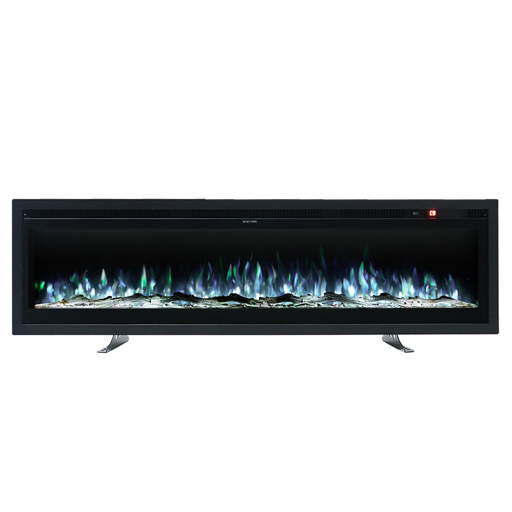 Bring warmth and style to your home with this versatile Electric Fireplace, featuring realistic flickering flames visible through a clear tempered glass front. Complete with a choice of crystals or faux logs, the flame colour and brightness can be adjusted to create the perfect ambience. Designed to suit a variety of spaces, it can be recessed into the wall for a sleek finish, wall-mounted for a modern touch, or placed freestanding using the included floor stands. A practical and elegant addition for cosy living.