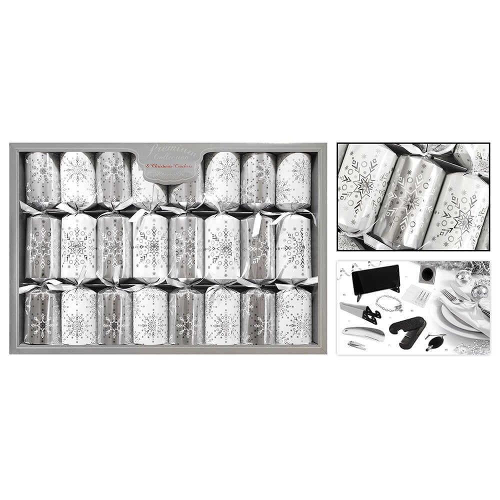 8 Premium Crackers Silver Snowflake