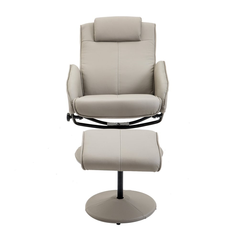 • Overall Dimensions: Dimensions: 78 x 71 x 101 cm, Color: Grey, Material: artificial leather, wood, sponge, steel, footrest: 43 x 38 x 41.5 cm, Seat height: 48 cm, max. Armchair load capacity: 120 kg, max. Footstool Load capacity: 100 kg.
