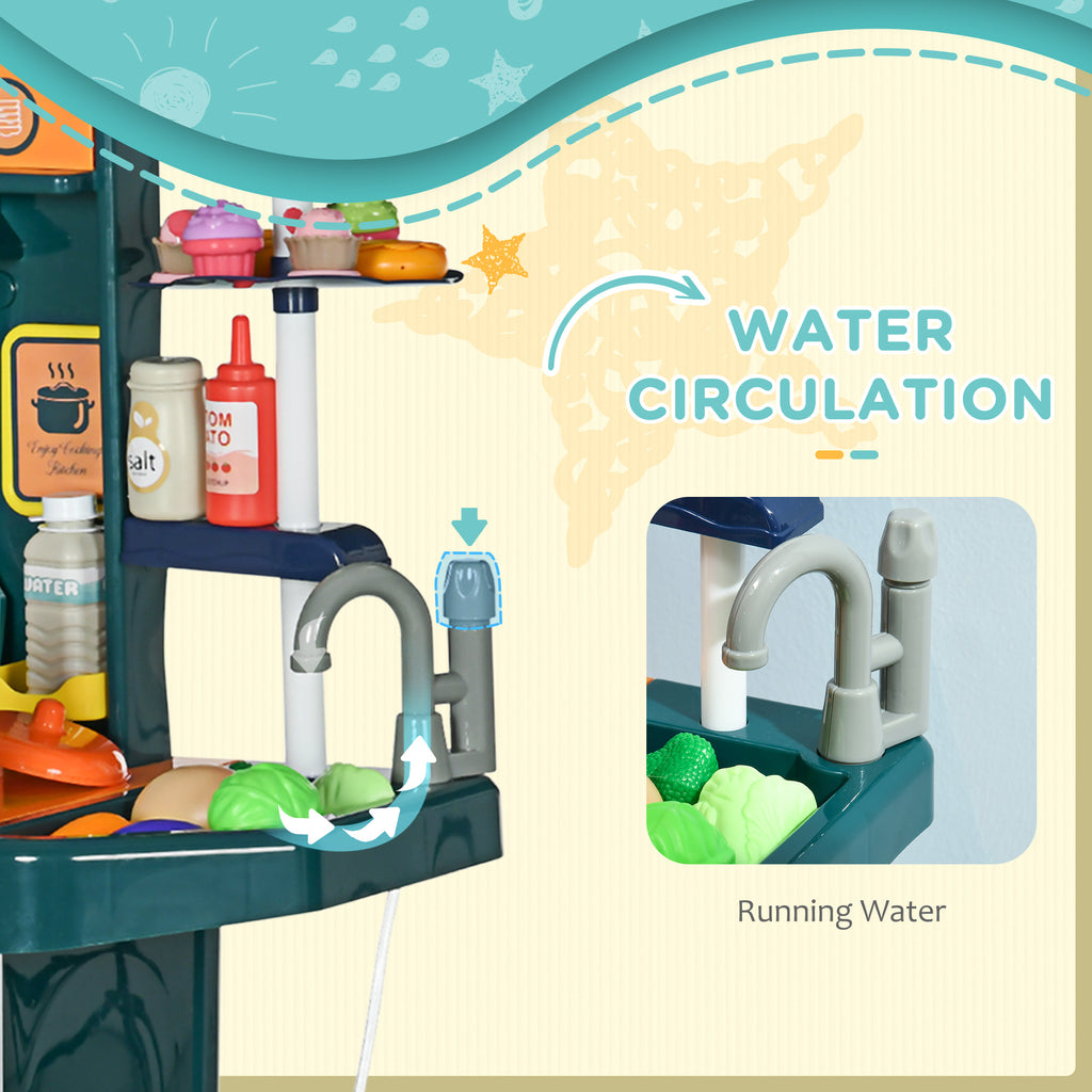 Inspire your child's imagination with our AIYAPLAY toddler kitchen playset. Designed to emulate the real thing, kids have the luxury of 77 accessories to play with, including toy pots, utensils and pretend food. With a wide array of sound effects and lights, it also includes a running tap, making playtime feel real. Its open design lets several children play and work together, improving their social skills. Watch their creativity blossom