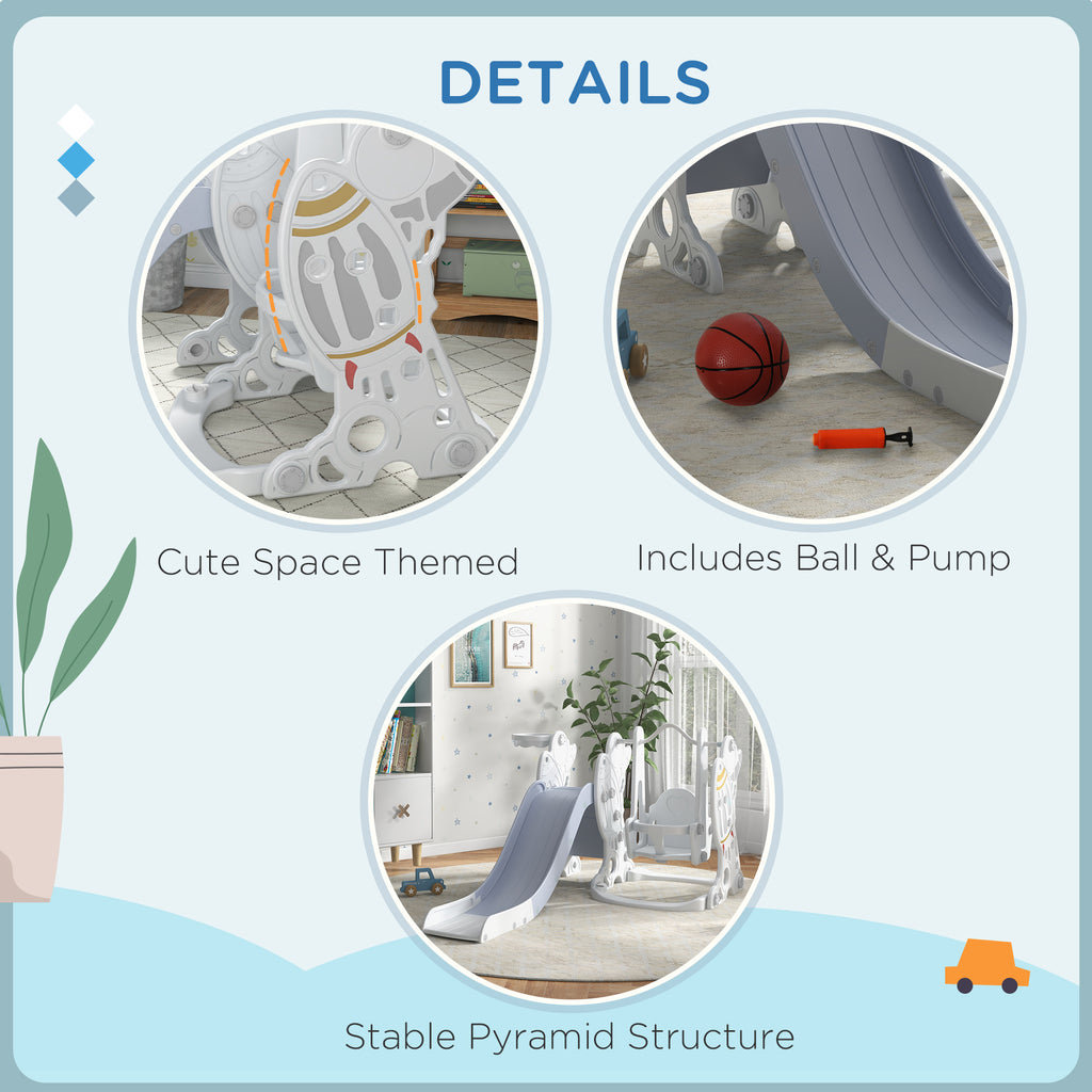 With this AIYAPLAY space-themed swing and slide set, you'll turn your home into an intergalactic playground. A piece for kids to love, it's designed to provide excitement and joy, using the slide and swing for endless entertainment. There's also a basketball hoop for even more fun. All edges are rounded for safety, ensuring they won't get hurt when playing. Quick and easy to assemble, you'll have it set up in no time. Watch their imagination soar at home, making boredom a thing of the past.