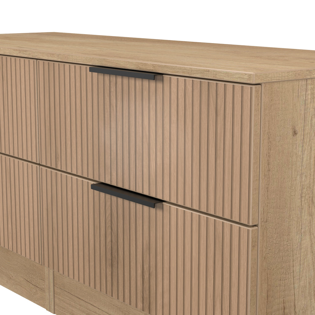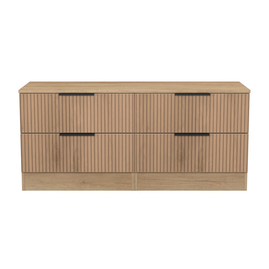 (Dimensions: H51 x W110 x D39cm) A large 4 drawer bed box. A Perfect storage solution for any room (not just the end of your bed). Could also be used as a low level TV/Media stand. A strinking new range with a eye catching Slat Effect patten on the fronts or the doors and drawers, as well as sleek black metal handles. Modern and striking this range will stand out in any modern home. All our furniture is made in the United Kingdom, to the highest quality using responsibly sourced materials. It is delivered direct to your location of choice by one of our two man delivery teams, and comes fully assembled (although items with legs will have those legs removed during transit to avoid damage).
