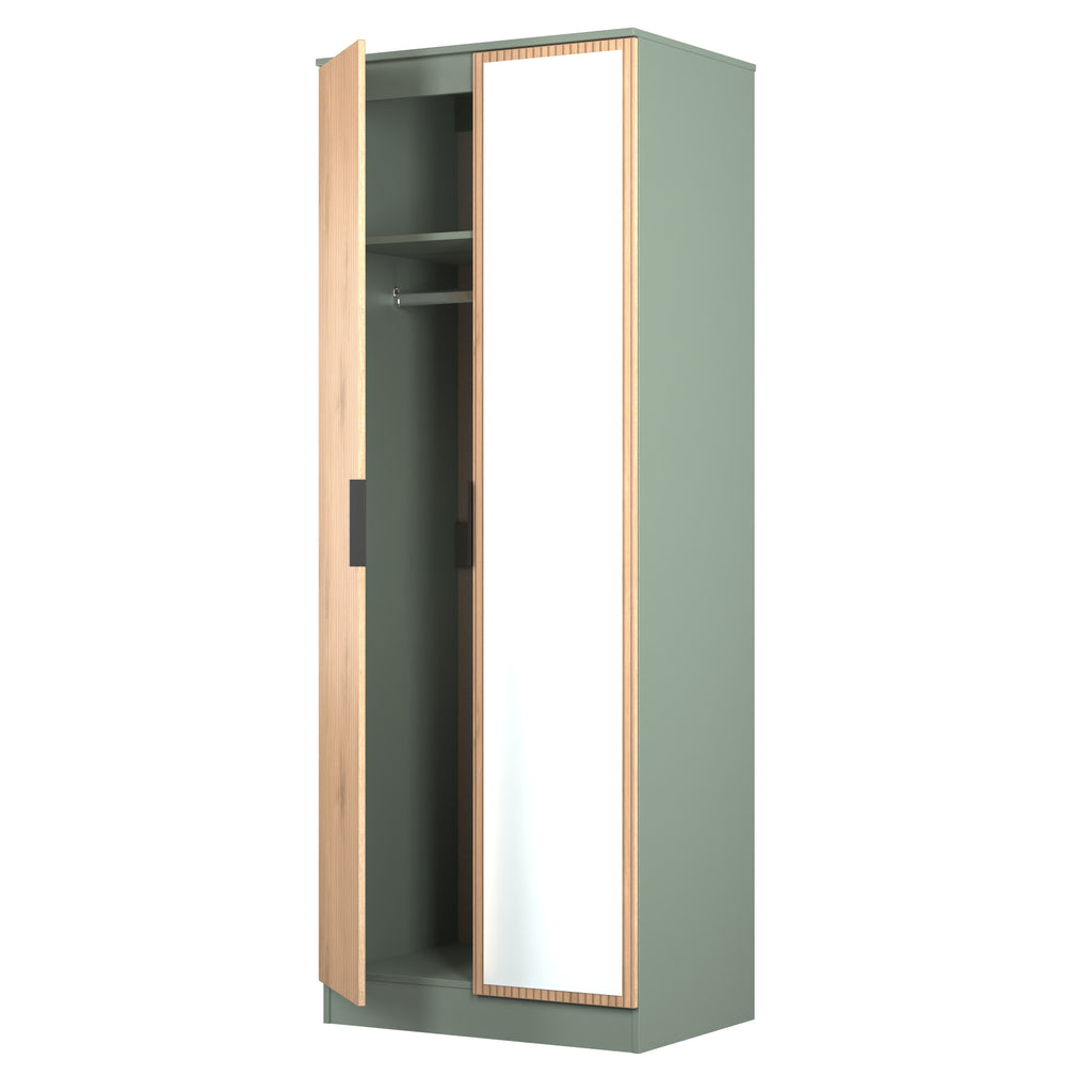 Alaska Ready Assembled Tall 2 Door Mirrored Robe in Slat Effect & Reed Green