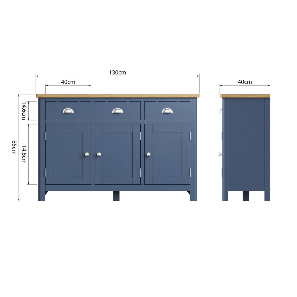 Aldeburgh Blue Sideboard with 3 Doors 130 x 40 x 85 cm