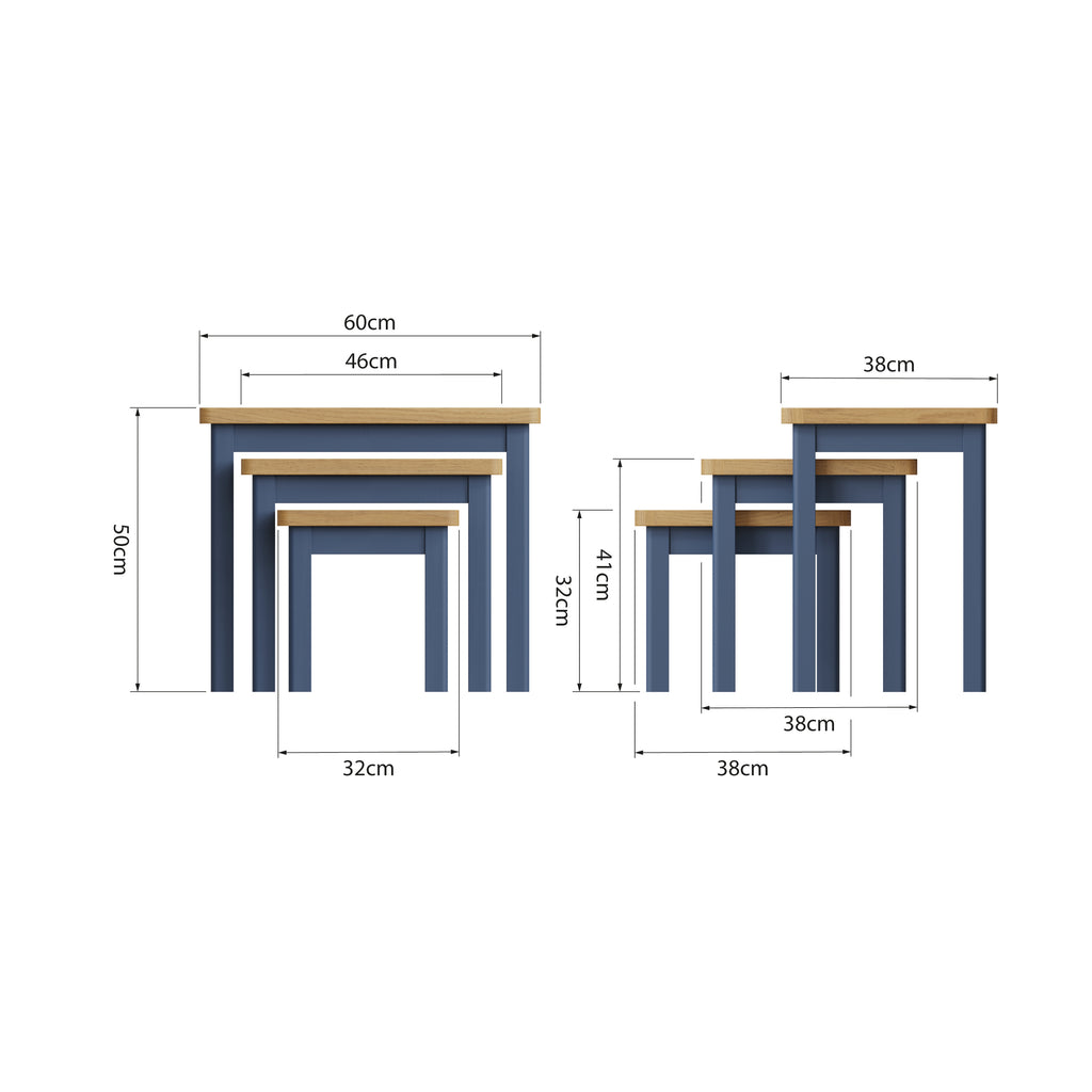 Aldeburgh Blue Nest of 3 Tables 60 x 38 x 50 cm