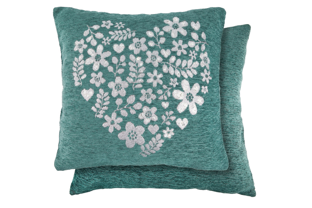Soft touch chenille cushion cover with a botanical inspired floral heart design on one side and plain colour matched reverse. Use as a scatter cushion for sofa's, feature chairs or beds. Cushion pad is not included.