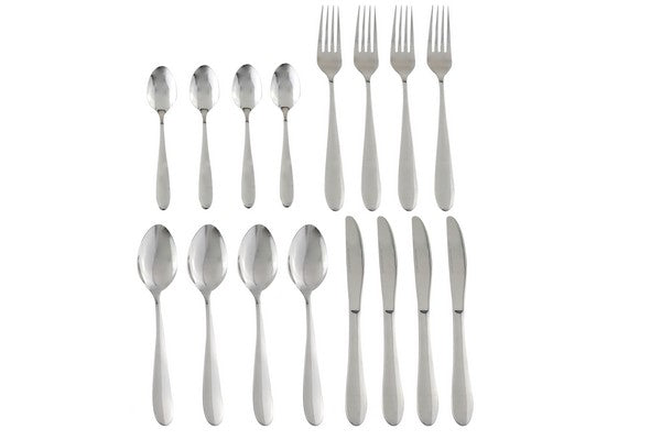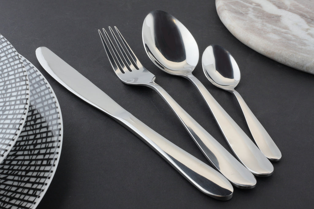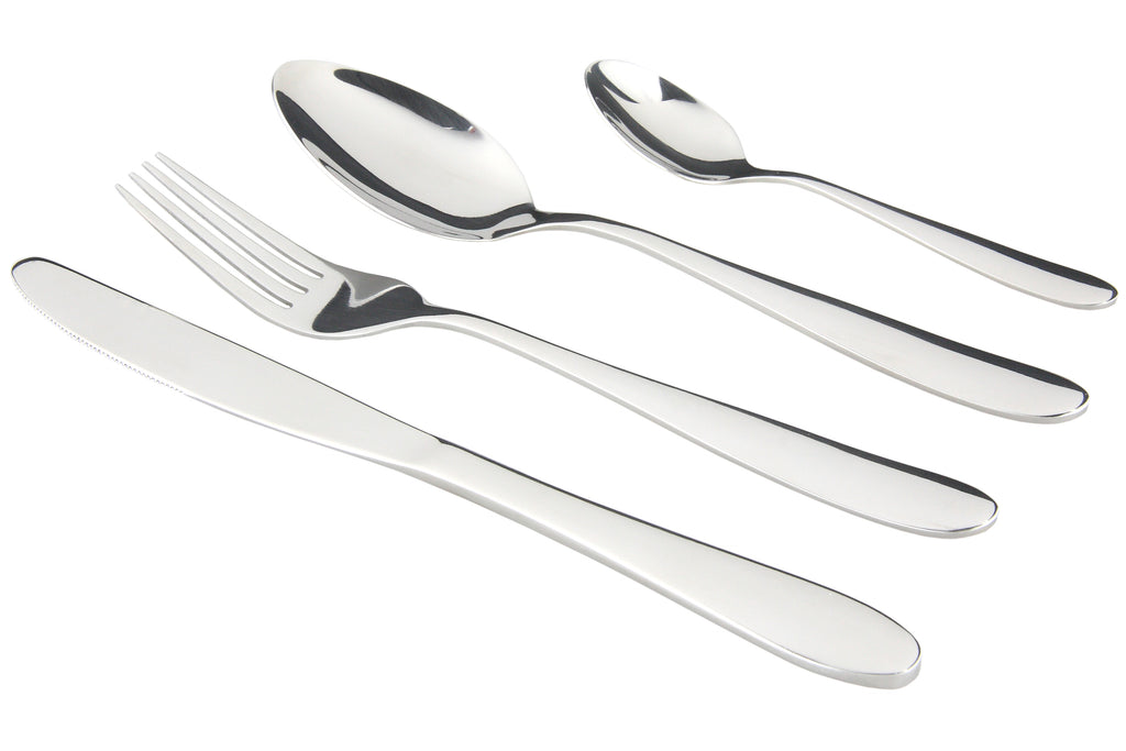 Smooth and shiny stainless steel mirror finish 16 piece cutlery set.