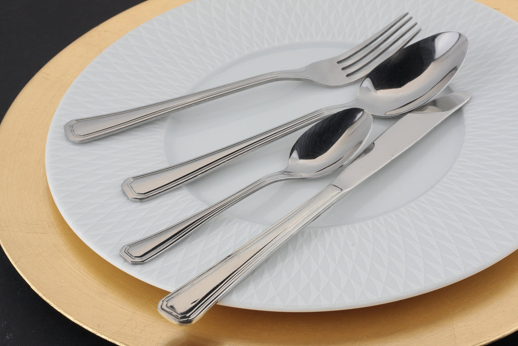 Our 16 Piece Black Eclat cutlery set is perfect for up to four people. It includes 4 knives, forks, spoons, and teaspoons. This cutlery looks stunning and has a timeless design that works in both traditional and contemporary settings.