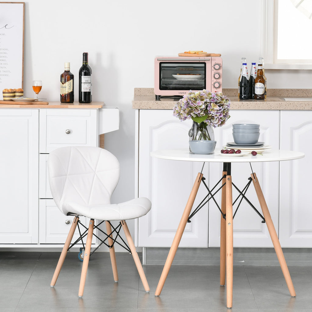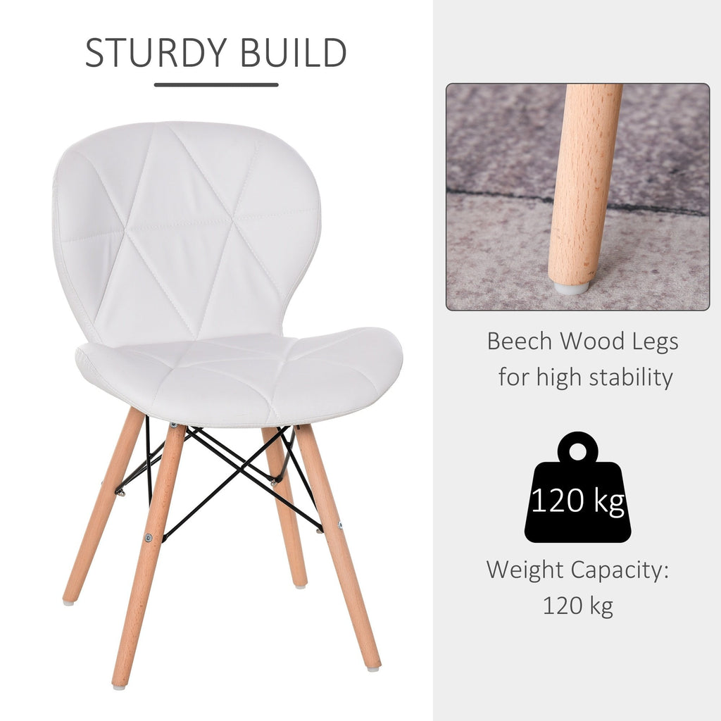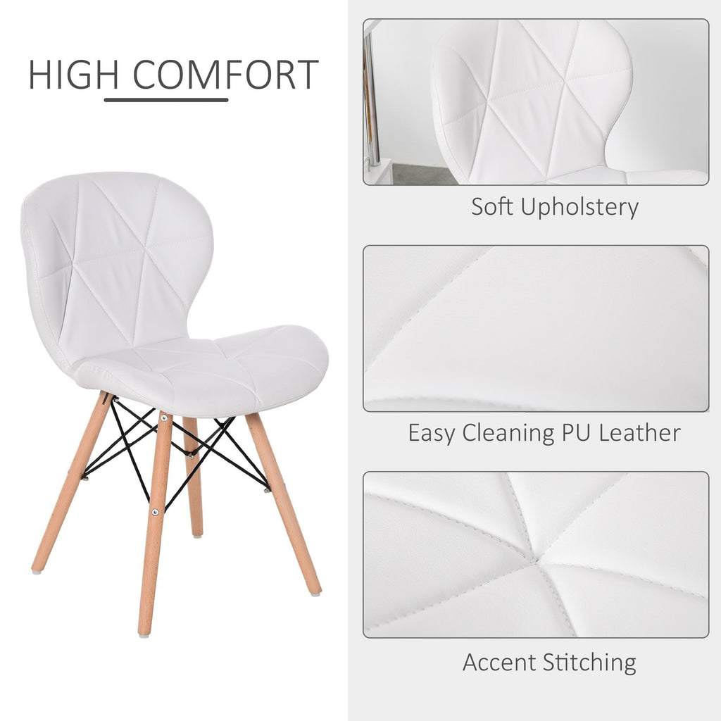 Accent your kitchen counter or seat a guest with this dining chair set. Classic and simple look blends well in a variety of stylish home setups. Soft cushioned seats and PU leather delivers exceptional comfort. The curved backrest help in keeping relaxed body posture. Beech wood legs with wire metal base add to its stability and durability.