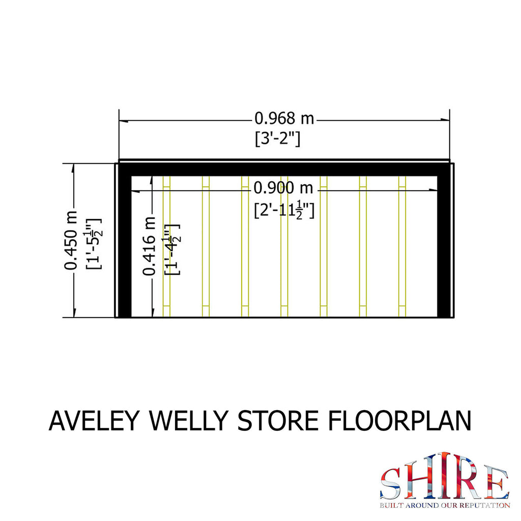 The Aveley Welly Store is perfect for keeping your family's footwear tidy! The store has a base coat preservative ready for you to top coat to suit. Manufactured from high grade, slow grown, FSC approved, northern European pine. Framing is sturdy 34 mm square, the floor is 19 mm door backing with 19 mm overlap to roof and 12 mm shiplap T&G to walls.