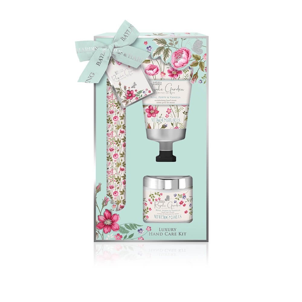 Baylis & Harding Royale Garden ultimate manicure set, is a collection that contains hand cream, hand soak crystals and a nail file that is vanilla, rose and poppy scented.