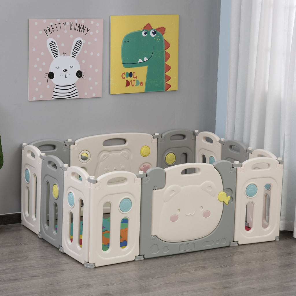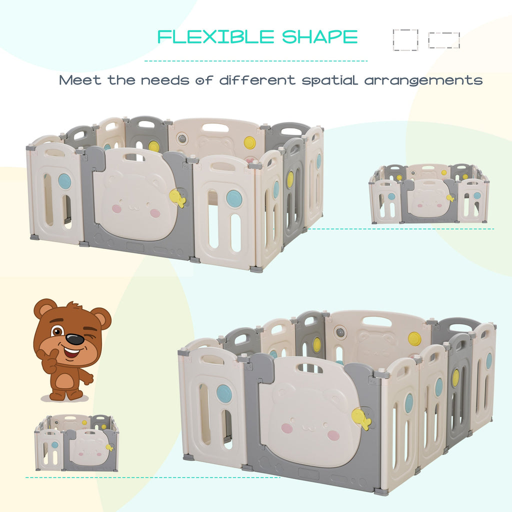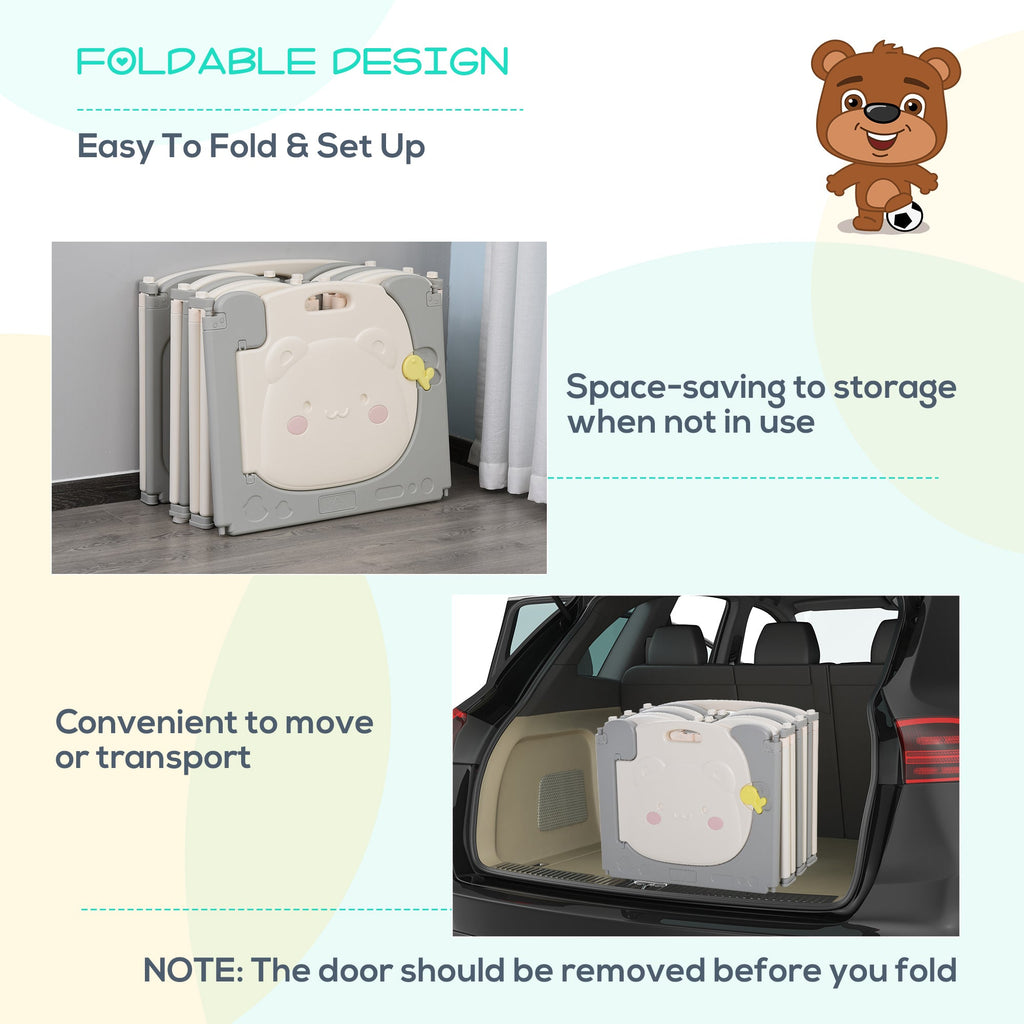 - NOTE: The door should be removed before you fold. FOLDABLE DESIGN & FLEXIBLE SHAPE: This 12-piece play pen offers large room for kids to play. It sets up and folds up quickly for more convenience and space-saving storage. You can increase or decrease the number of pieces at will to change the shape and space. NOTE: The door should be removed before you fold.
