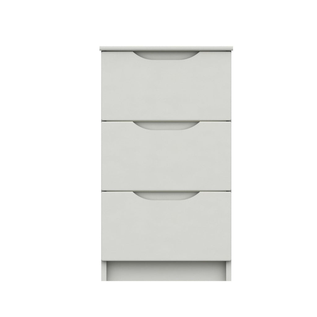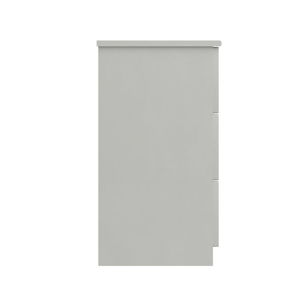 The well-constructed chest serves as the ultimate bedside companion. In addition to providing plenty of space for bedroom storage, the durable chest allows you to keep all those bedside essentials within easy reach. The bedside chest comes with 3 drawers that are good size for storing bedside essentials, the drawer has a faux linen effect within each compartment and smooth sliding metal runners, two distinctive attributes that account towards the quality of this bedside chest. The range comes complete with 8mm heavy duty drawer base. Each of the pieces within the range have a soft radius profile on tops, drawers and doors. Soft radius handles are also featured to further complement the profile. This range comes complete with 8mm heavy duty drawer base and smooth sliding metal runners.