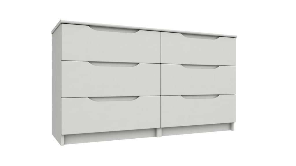 The well-constructed double chest serves as the ultimate bedroom piece. In addition to providing plenty of space for bedroom storage, the durable chest allows you to keep all those bedside essentials within easy reach. The bedroom chest comes with 6 drawers that are good size for storing bedroom essentials, the drawer has a faux linen effect within each compartment and smooth sliding metal runners, two distinctive attributes that account towards the quality of this bedroom chest. The range comes complete with 8mm heavy duty drawer base. Each of the pieces within the range have a soft radius profile on tops, drawers and doors. Soft radius handles are also featured to further complement the profile. This range comes complete with 8mm heavy duty drawer base and smooth sliding metal runners.