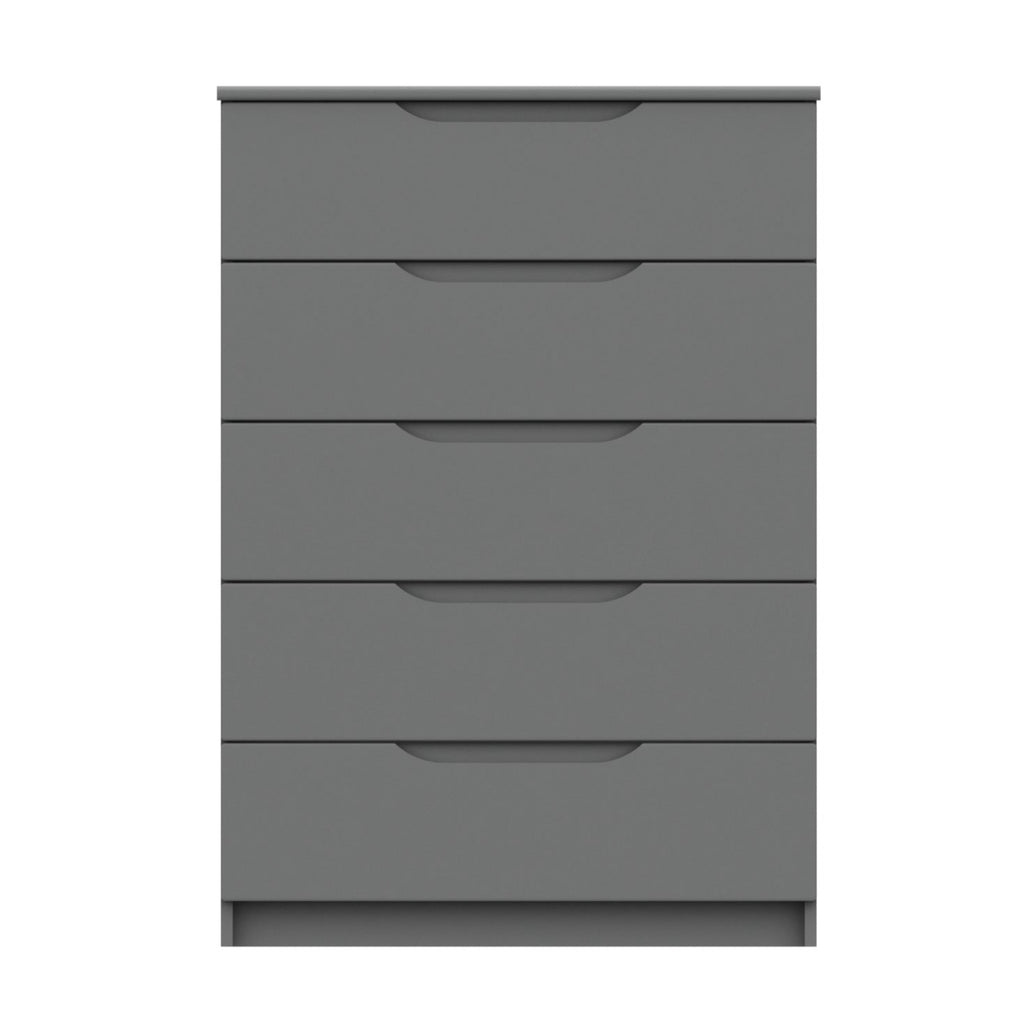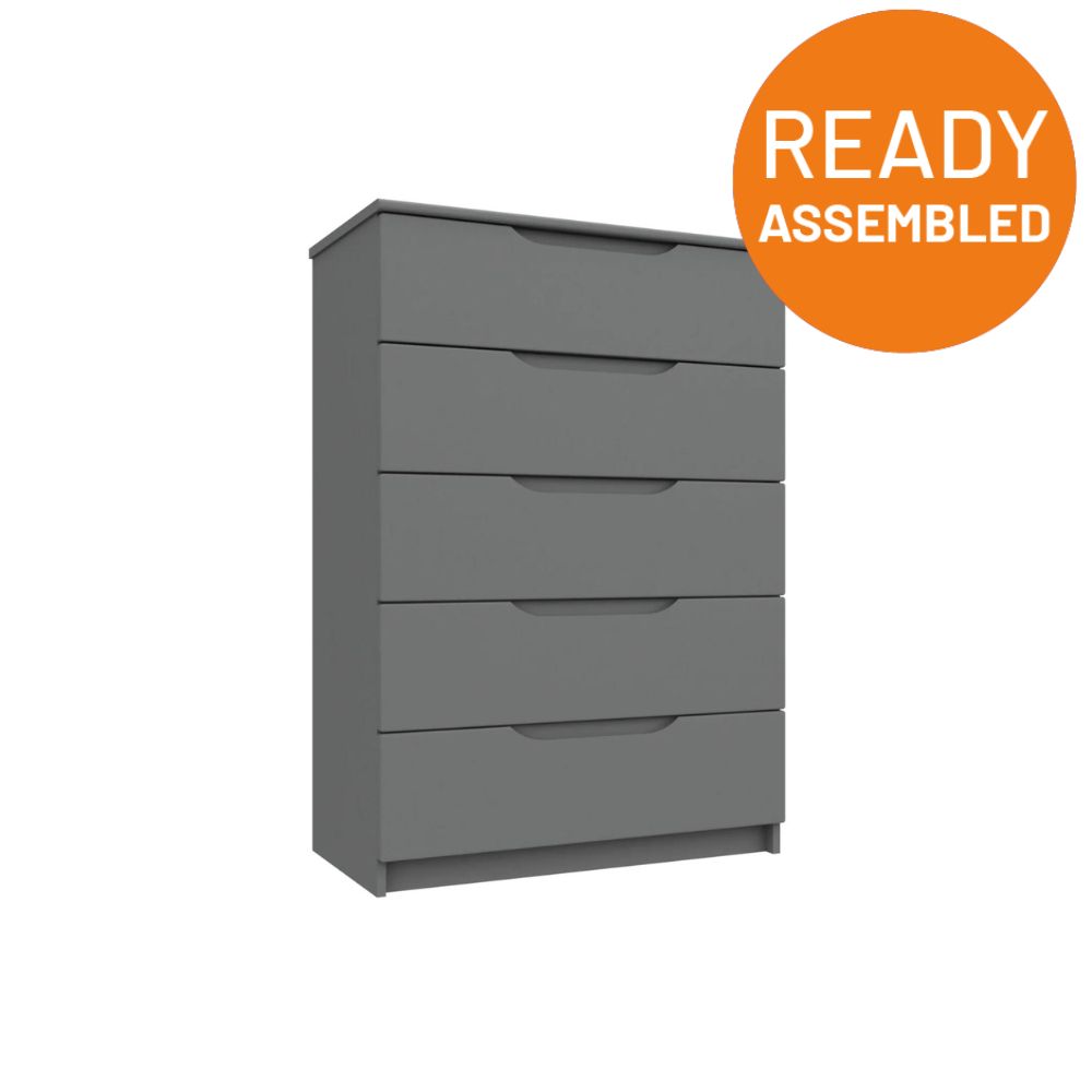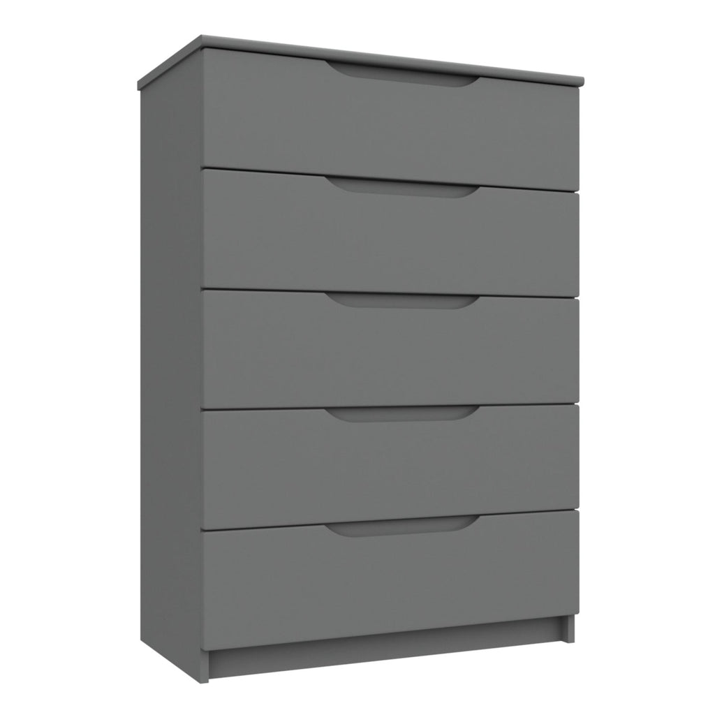 The well-constructed chest serves as the ultimate bedroom piece. In addition to providing plenty of space for bedroom storage, the durable chest allows you to keep all those bedroom essentials within easy reach. The bedroom chest comes with 5 drawers that are good size for storing bedroom essentials, the drawer has a faux linen effect within each compartment and smooth sliding metal runners, two distinctive attributes that account towards the quality of this bedroom chest. The range comes complete with 8mm heavy duty drawer base. Each of the pieces within the range have a soft radius profile on tops, drawers and doors. Soft radius handles are also featured to further complement the profile. This range comes complete with 8mm heavy duty drawer base and smooth sliding metal runners.