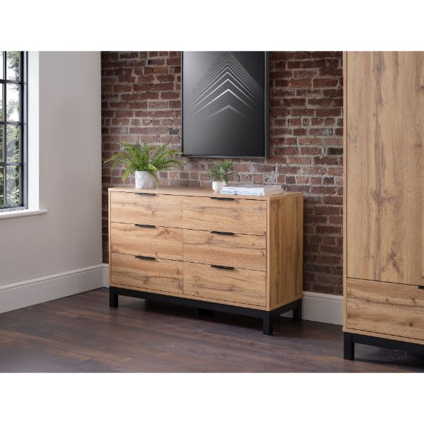 Using revolutionary click furniture technology, the Bali collection combines high quality style with simple assembly. With a modern oak finish and contrasting black legs and handles, the Bali collection creates a classic industrial look in your bedroom, leaving you with a high-quality interior, with low maintenance upkeep. This collection includes: 1 drawer bedside, 2 drawer bedside, 4 drawer chest, 6 drawer wide chest, dressing table/desk, wardrobe, and bookcase bed.