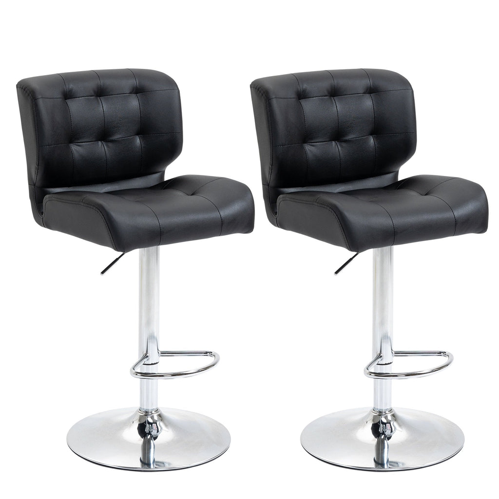 These two bar stools fromdo more than look good - they feel absolutely fantastic too. Formed into a racing-style design with cool PU leather upholstery, it's filled with thick padding on the seat and back so you can sit down and relax instantly. High back for support, armless so you don't feel trapped in. Each seat fitted on a metal base for full support, with a large round base for balance. Finished with a convenient foot rest.