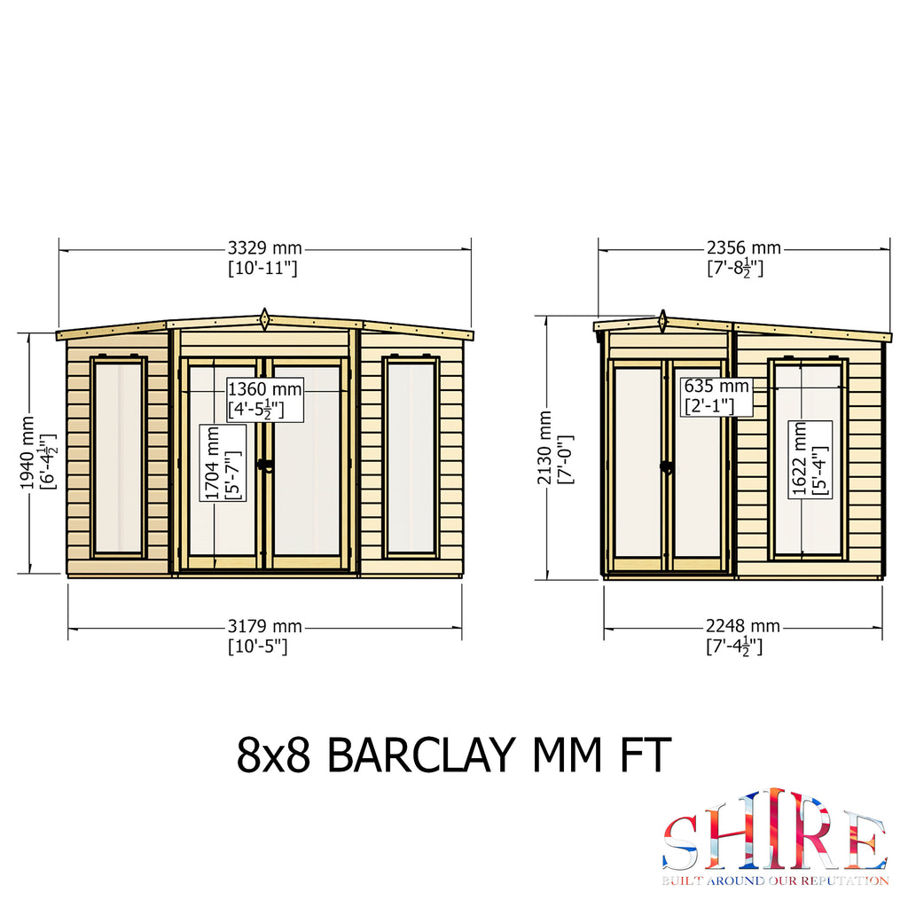 The Barclay is a magnificent summer house designed to complete a corner of your garden. With its full height, acrylic safety glazed windows and doors, this summerhouse is full of light and is a delight to spend your time in. Wall panels are made from 12mm shiplap boards and all framing is sturdy 34mm square. This lovely corner house is manufactured from high grade FSC certified northern European pine. The roof and floor are tongued and grooved timber. Dipped base coat preservative ready for you to top coat.