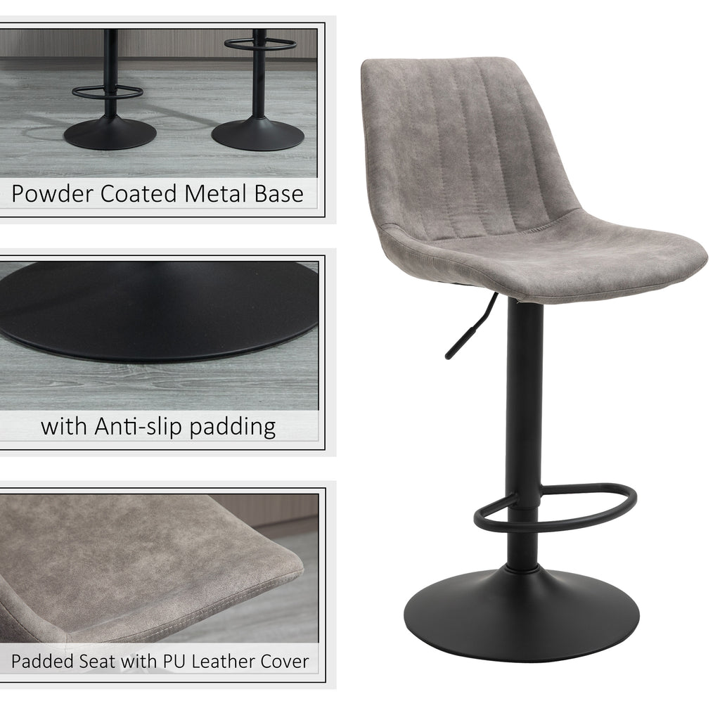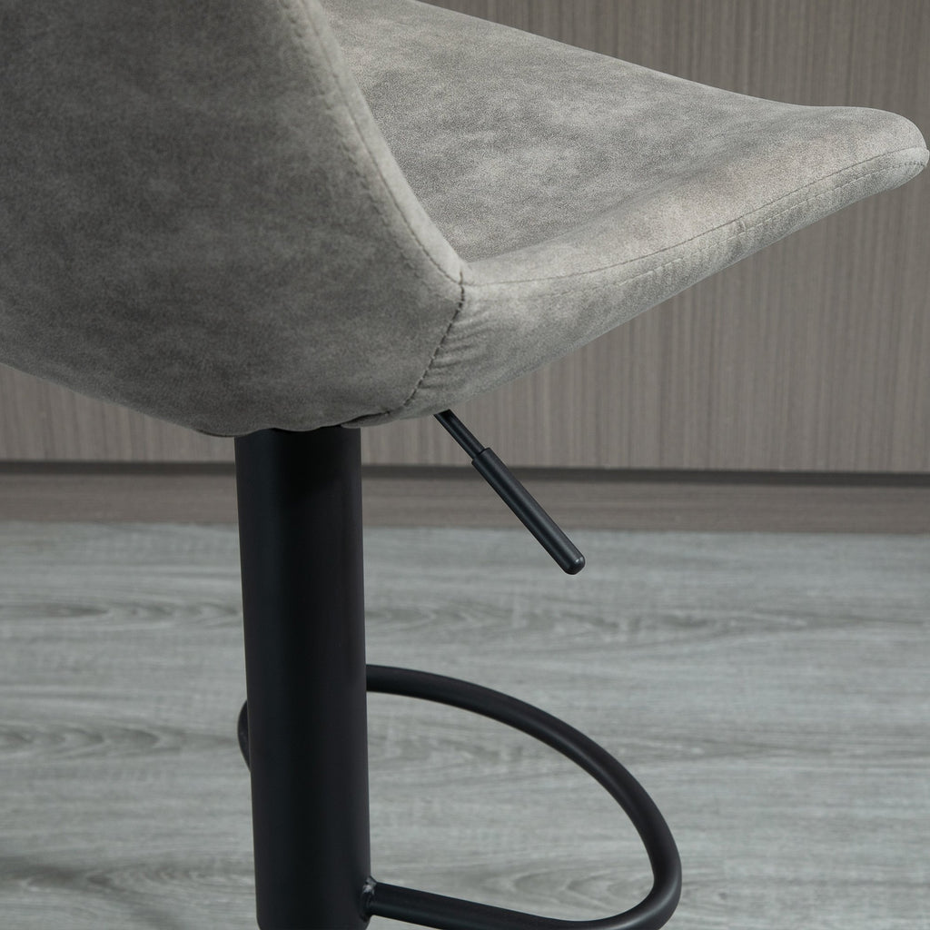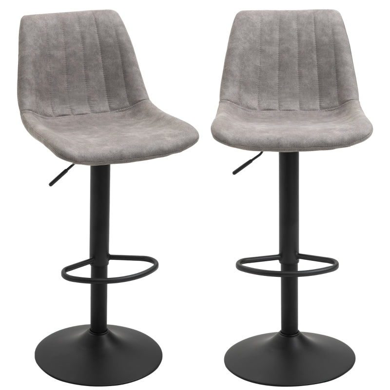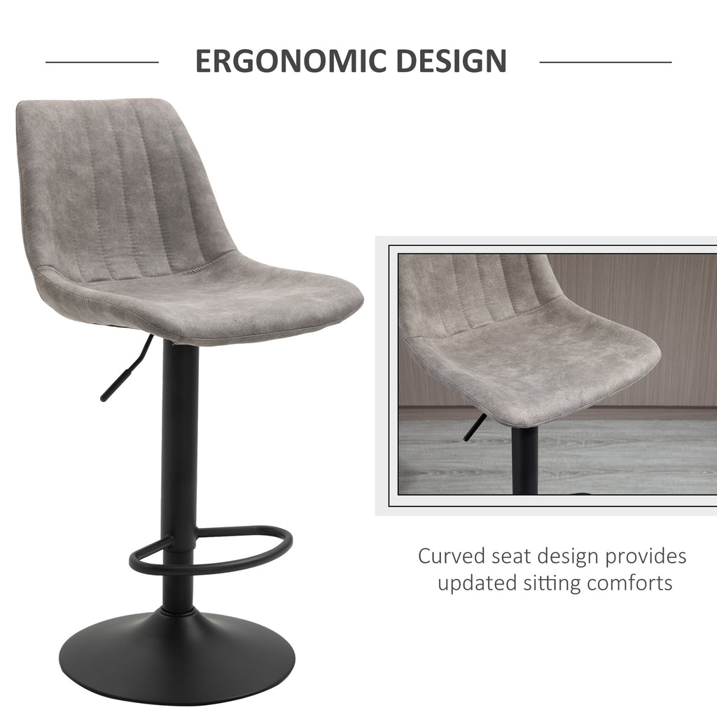 Bring sophisticated retro styling to your home dining times with these bar stools from HOMCOM. In a set of two, you'll instantly create a matching look in your home, with the neutral colour palette effortlessly blending in with almost all style interiors. The seat of each comes in a relaxed and armless tub design, allowing you to sit freely, whilst the upright back provides support to your body. It's filled with sponge for comfort, wrapped in microfibre cloth, in a slightly worn effect for a cool look. Each chair is finished with a sturdy metal base which features a convenient foot rest.