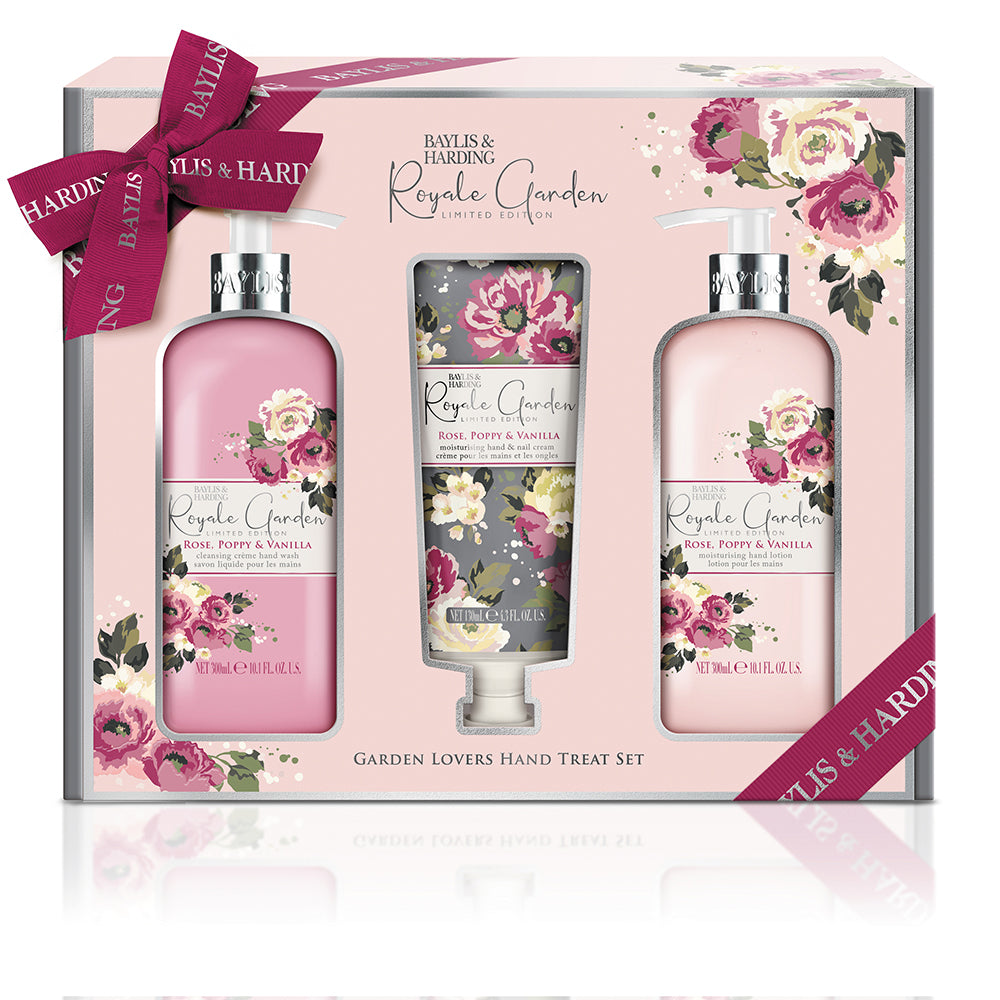 Baylis & Harding Royale Garden Hand Care Gift Set, Containing: 300ml Bottle Hand Wash, 300ml Bottle Hand Lotion & 130ml Tube Hand & Nail Cream