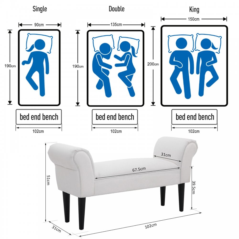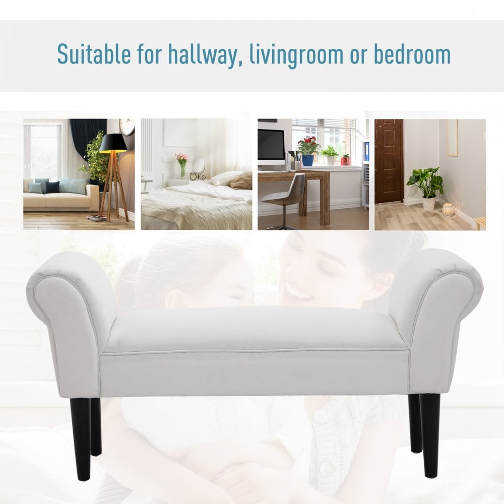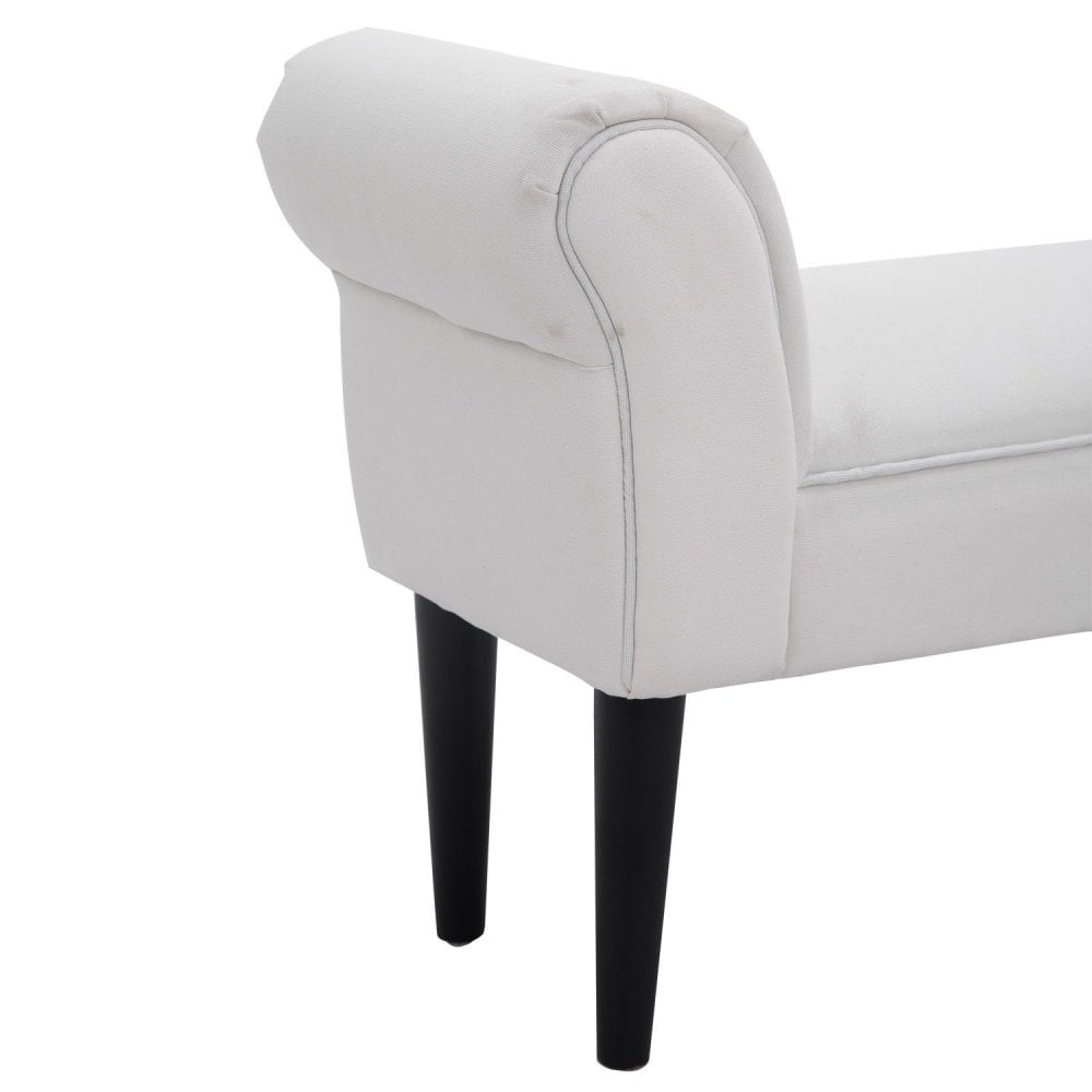 Bed End Chaise Lounge Sofa Window Seat Arm Bench Wooden Leg Fabric Cover Padded Hallway-White
