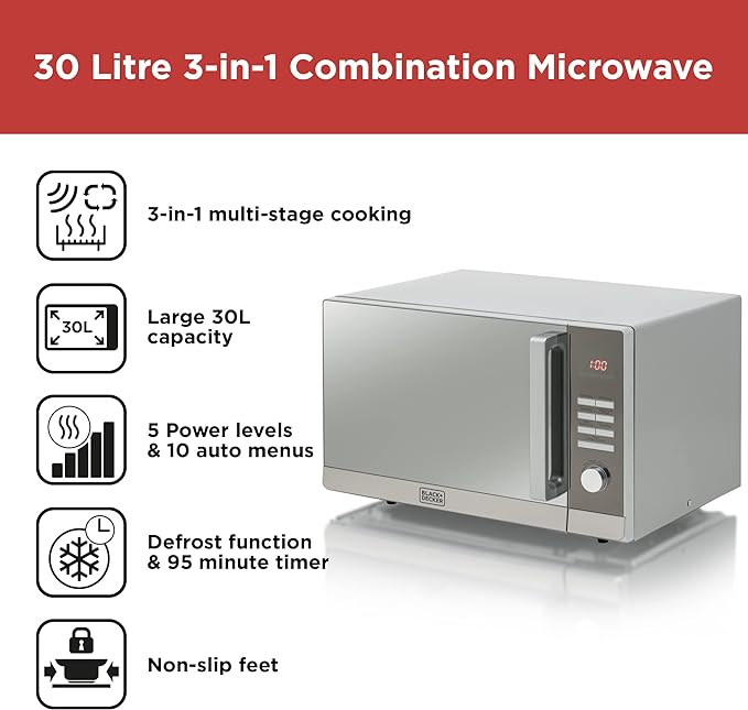 - 3-IN-1 COMBINATION MICROWAVE: Combined 900W microwave, 1100W grill and convection 2500W oven to cook a variety of meals. Incorporate defrost, microwave, grill or convection into one setting, saving time on multiple steps and stages
