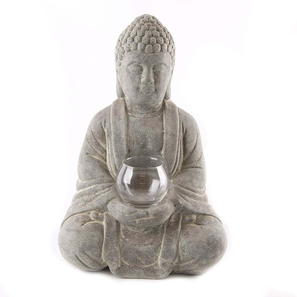This delightful contemporary grey sandstone effect Buddha is ideal for any home. A beautiful addition to any living room, conservatory or garden, this sculpture would make a perfect gift.
