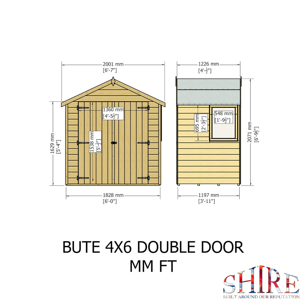 A popular garden shed which is manufactured from high grade, FSC approved timber with 12mm shiplap tongue and groove cladding over sturdy 34mm square framing with OSB roof and floor. With one opening, glass window that can go either side and a double door for easy access. Door comes with hasp & staple ready for your own padlock. Dipped base coat preservative ready for you to top coat.