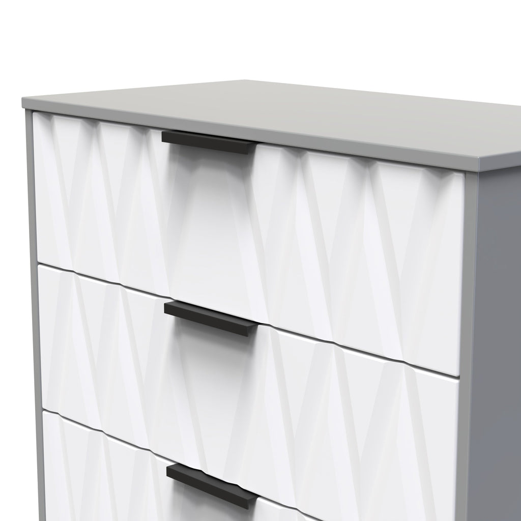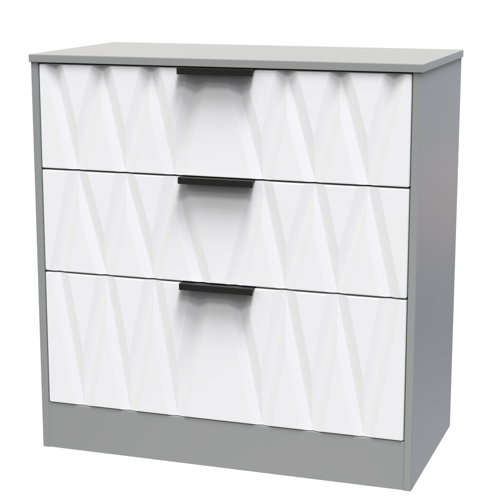 (Dimensions: H80 x W77 x D40cm) This deep 3 drawer chest of drawers is practical and stylish. Perfect for any home as a free standing storage unit. This distinctive front of the Las Vegas range combines a variety of colour options, with a choice of handles allowing it to compliment any interior design.