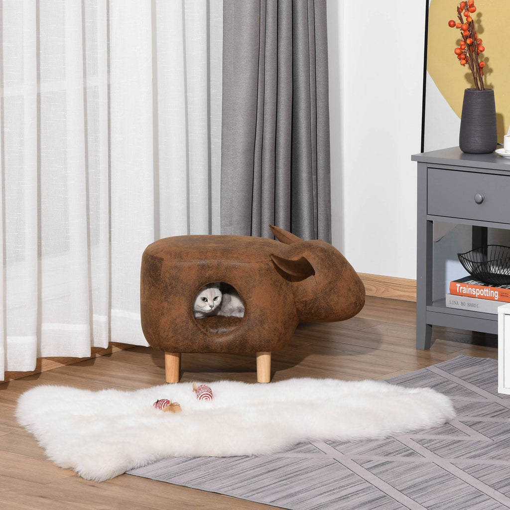 Our cat house is made of durable micro fabric, so it will not be a big burden to clean. The legs made of quality birch provide a strong support and ensure the safety. Non-slip foot pads also prevent your floor from damage. The bull shape of the condo provides extra fun and make it a great decoration to your house. What?s even more surprising is that this is not just a cat cave, you can also use it as footstool or kid stool. Take it home and enjoy it with your furry friends!
