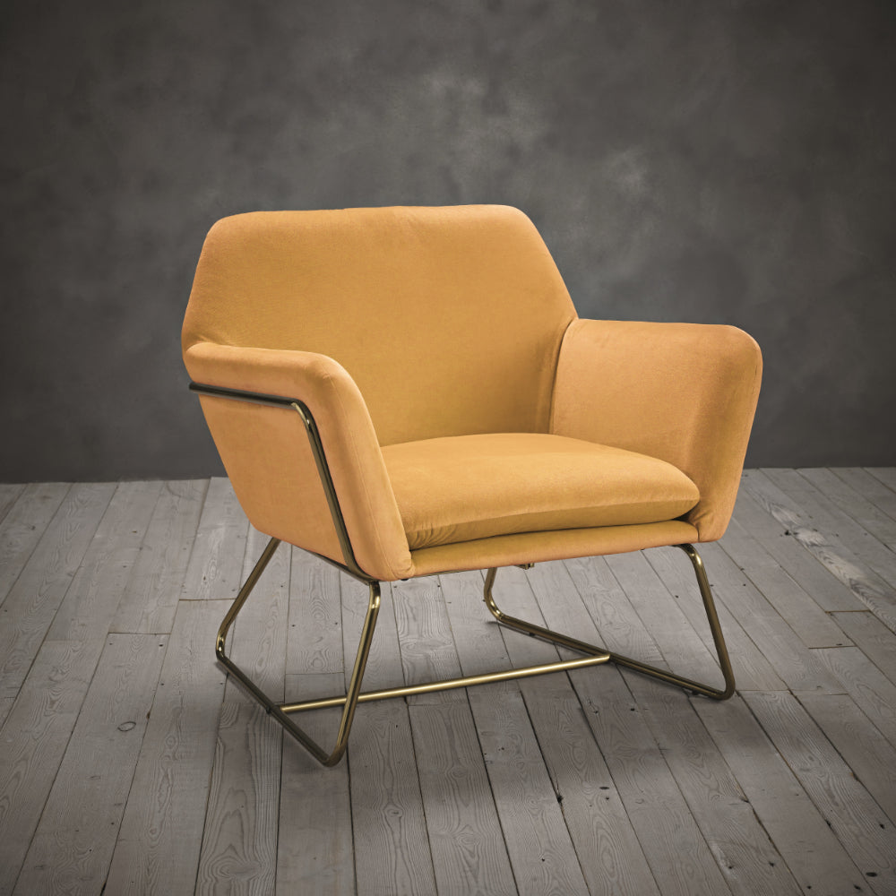 Add a statement chair to your interior with our Charles chair sleek gold frame with plush velvet cushion.