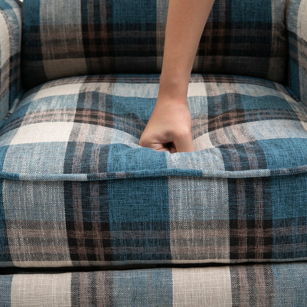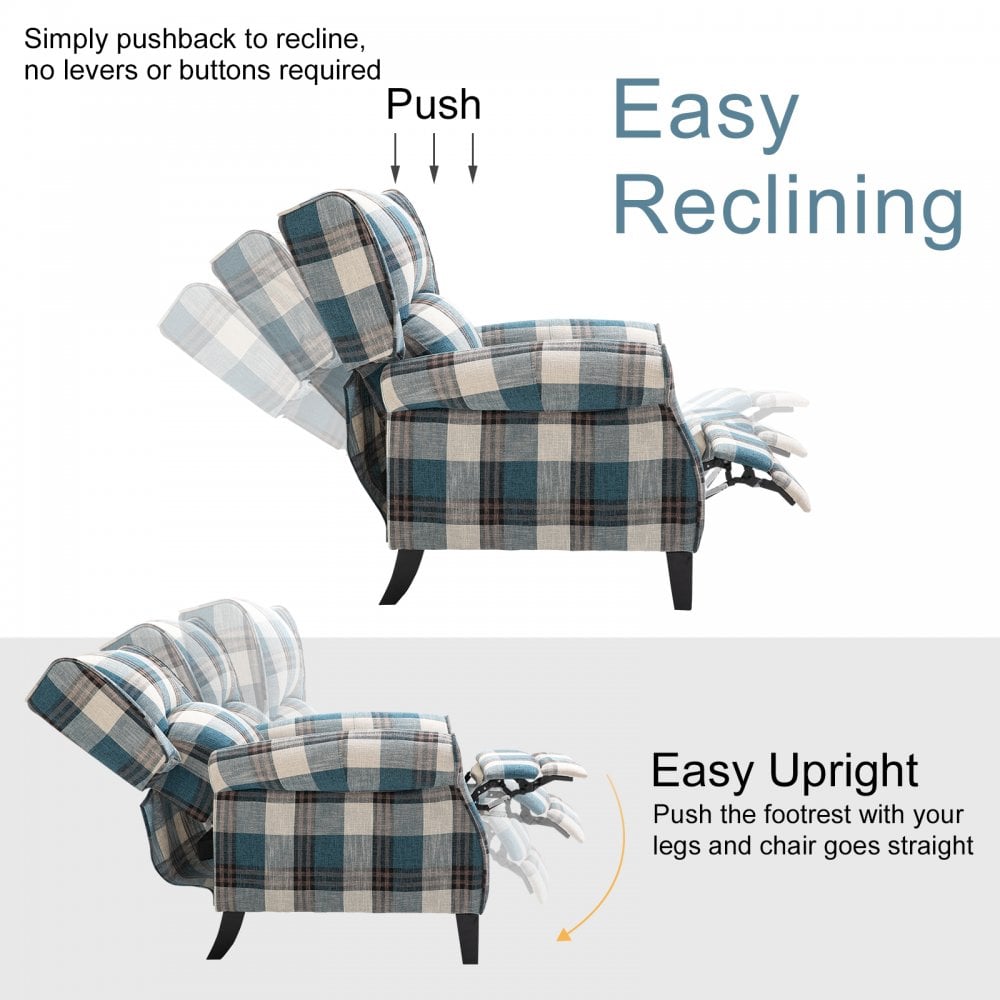 Check Armchair Plush Single Sofa Recliner for Living Room Blue