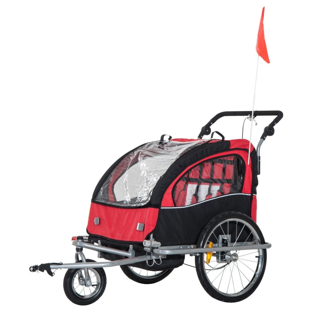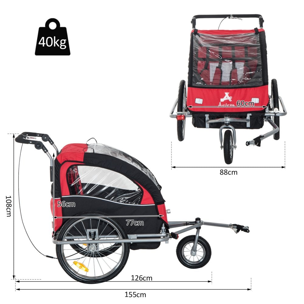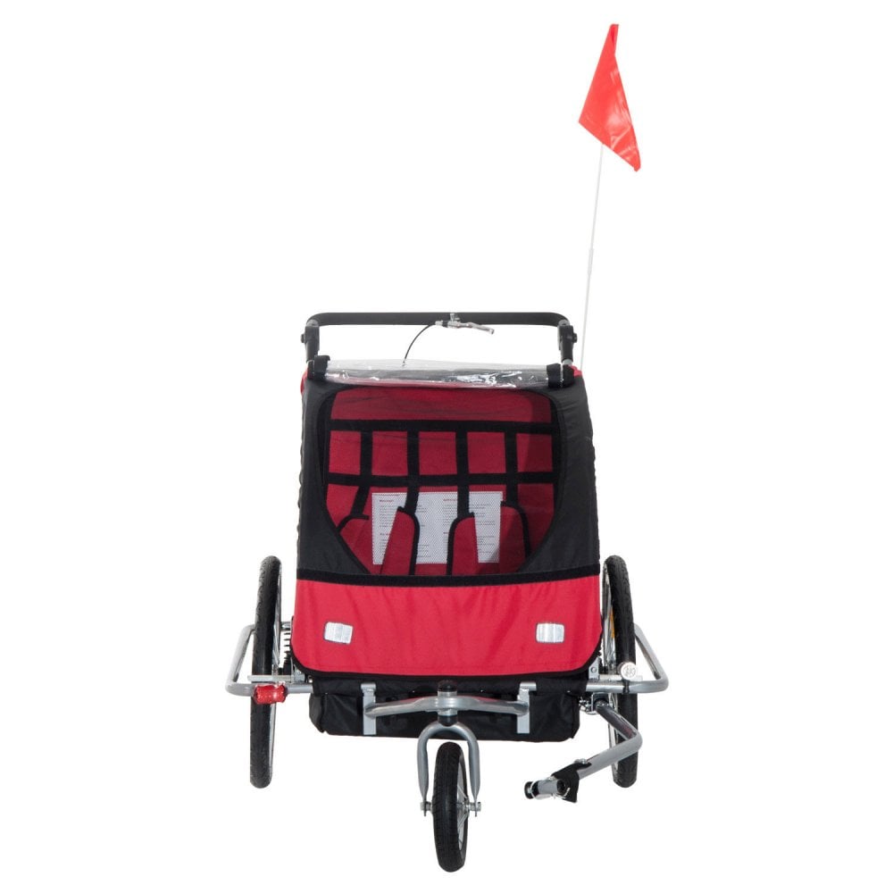 Child Cycle Trailer 2 Seater Black and Red 2 in 1 Multifunctional Bicycle Carrier Baby Stroller Jogger Kit Steel Frame