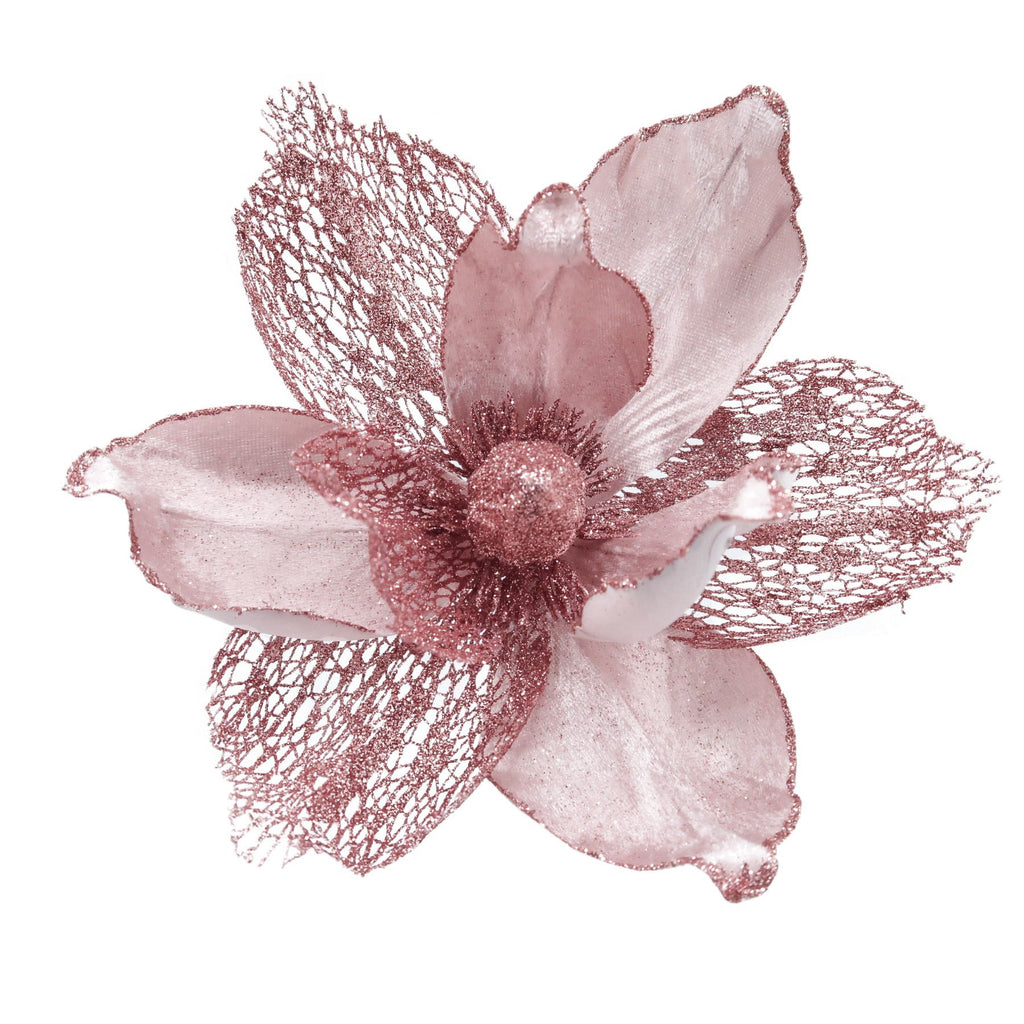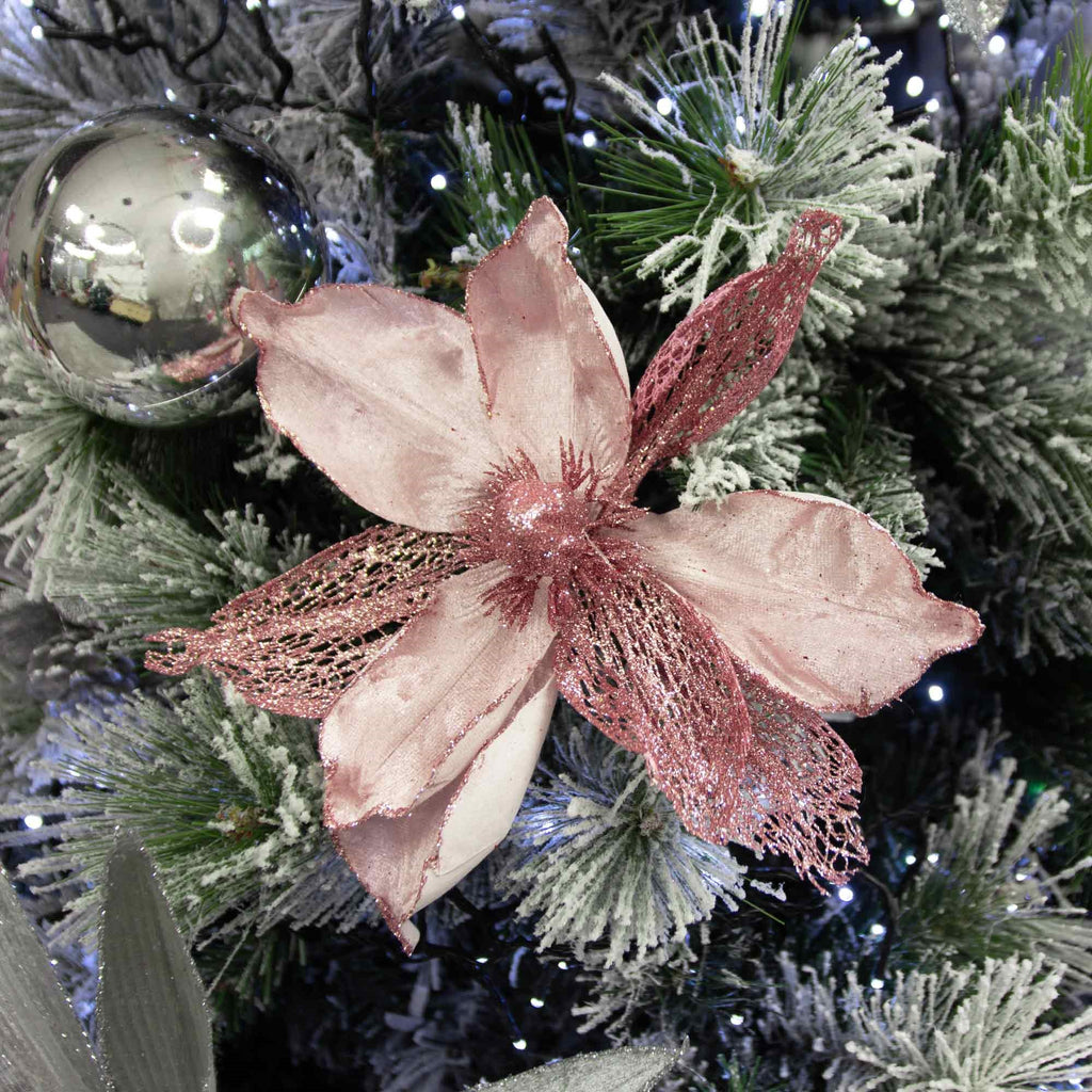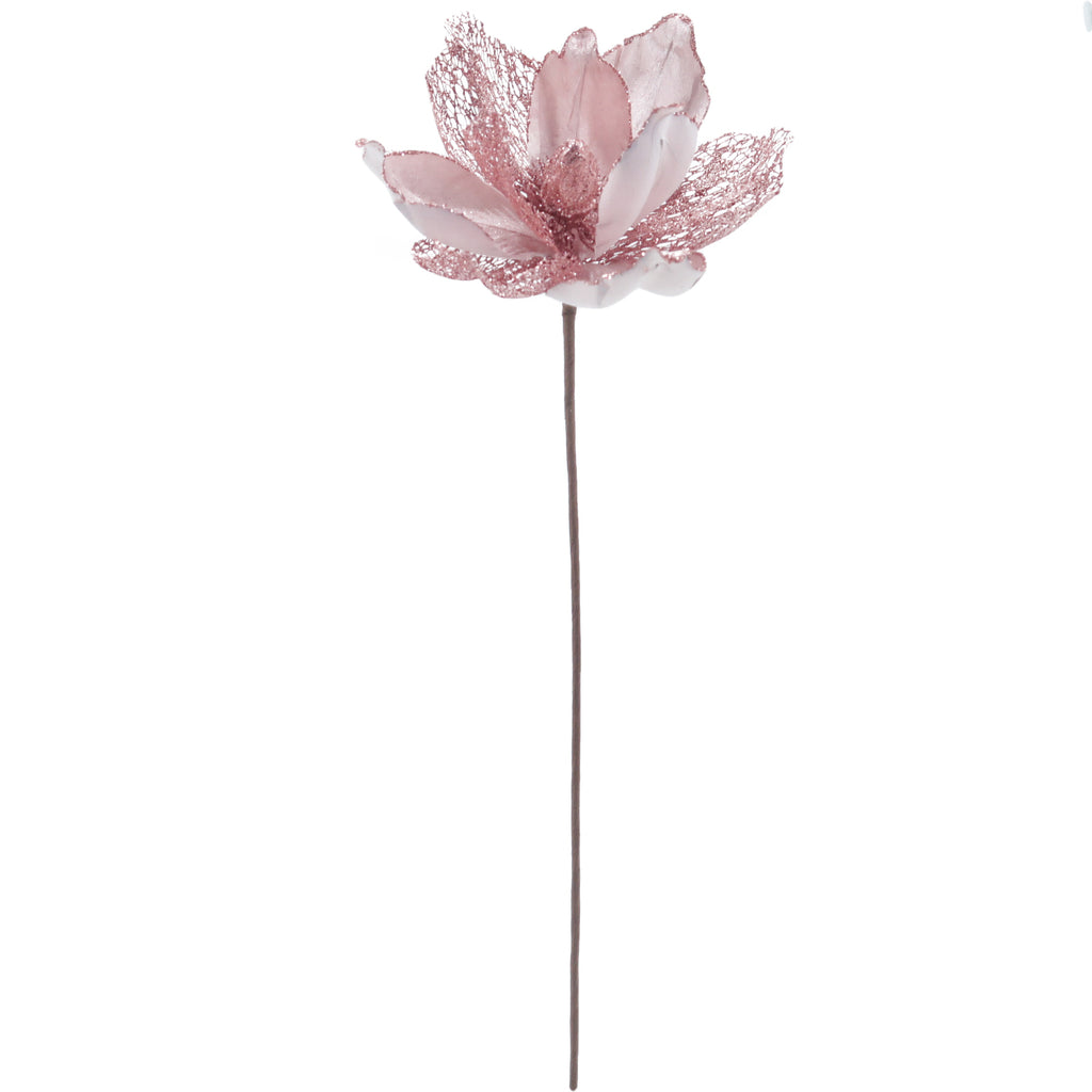 Christmas Sparkle Magnolia Flower Stem Pick Artificial - Blush Pink