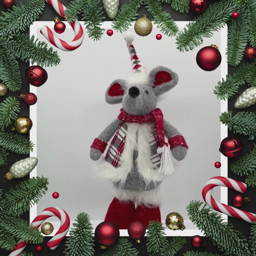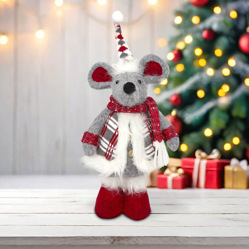 Add a Festive Touch with Our Standing Mouse in Grey Christmas Decoration!