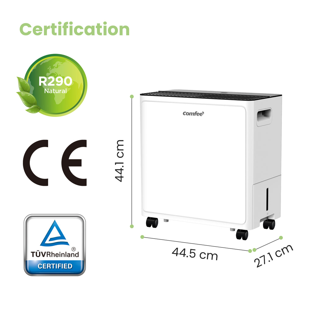 -Removes up to 30 liters of moisture per day, humidity range 35%â??85%