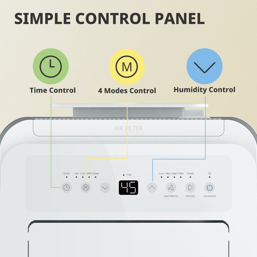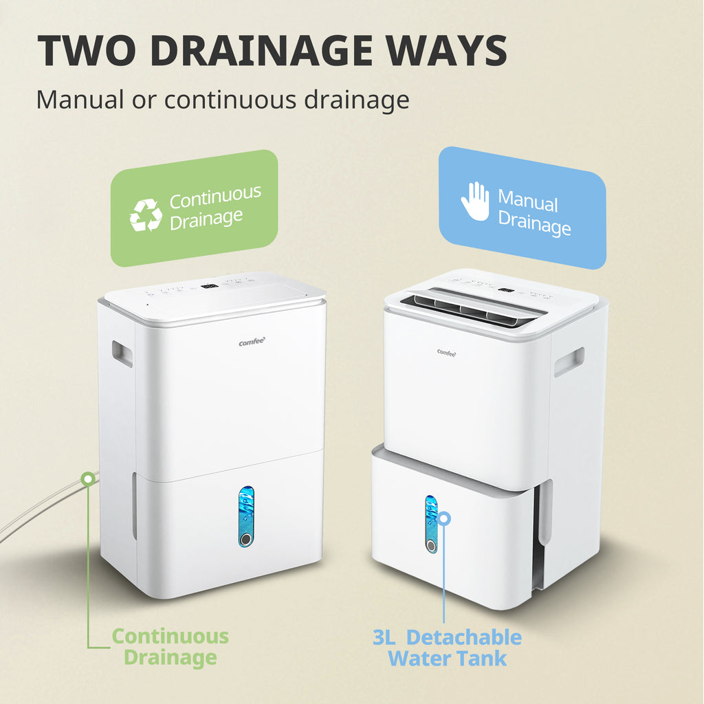 Maintain a dry and comfortable home with this 20L/day Dehumidifier. Featuring a 3L visible water tank, smart automatic humidity sensing, and Wi-Fi connectivity, it efficiently removes excess moisture while offering convenient control from anywhere. Its quiet operation, multiple fan speeds, and portable design make it ideal for bedrooms, living rooms, or laundry areas.