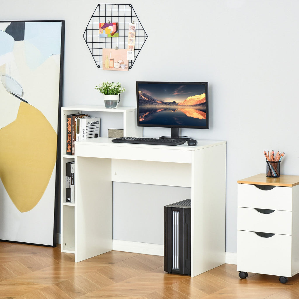 You are looking at an elegant and multifunctional desk to decorate your home. The computer table's three shelves offer plenty of room for your work supplies, books, folders, and potted plants, pictures, paintings can be displayed on top of the shelf. Also, it can be used as a study desk or writing desk with plenty of space for a Laptop or PC. Come and pick this desk with shelves from HOMCOM. Simplify your daily routine yet decorate your home with this stylish and functional piece.